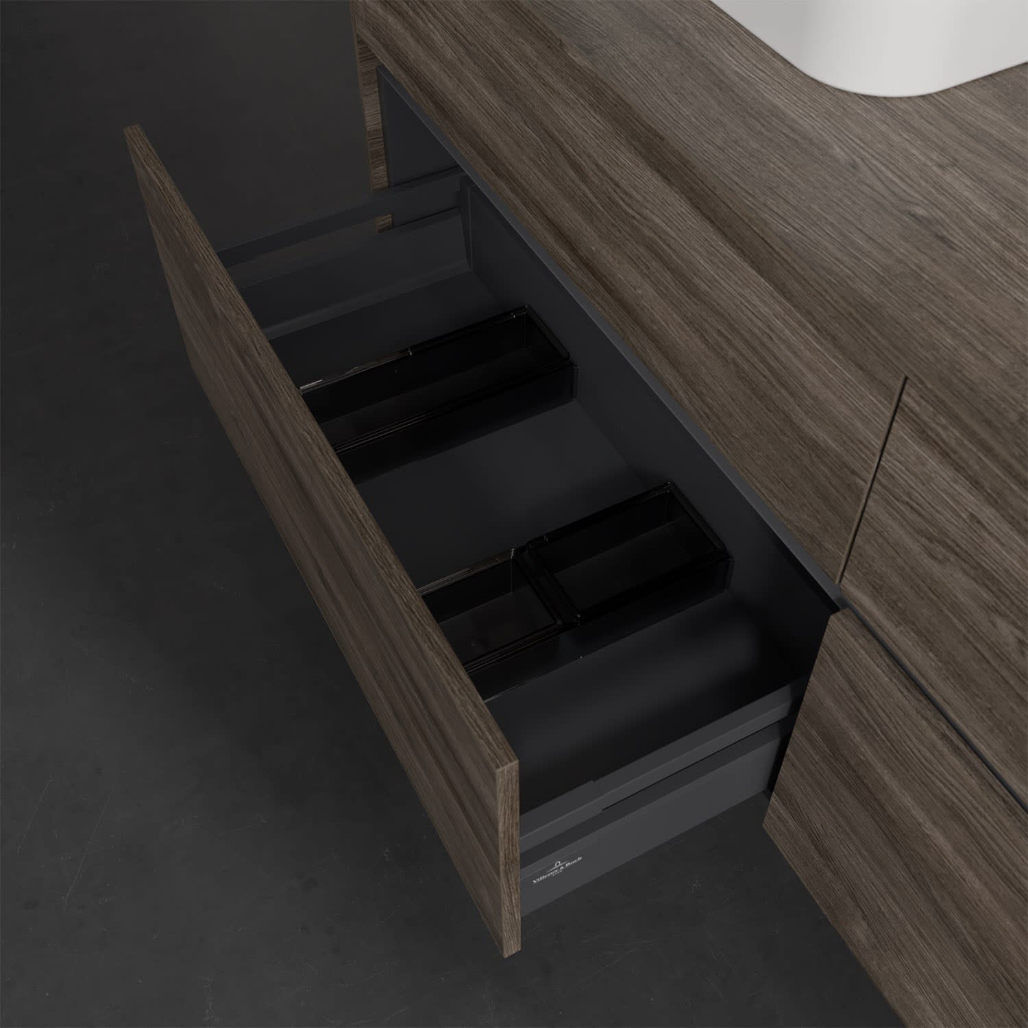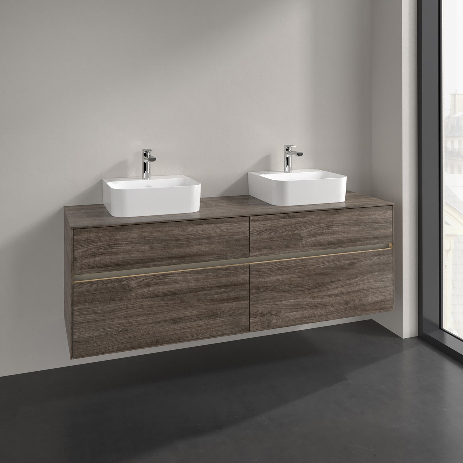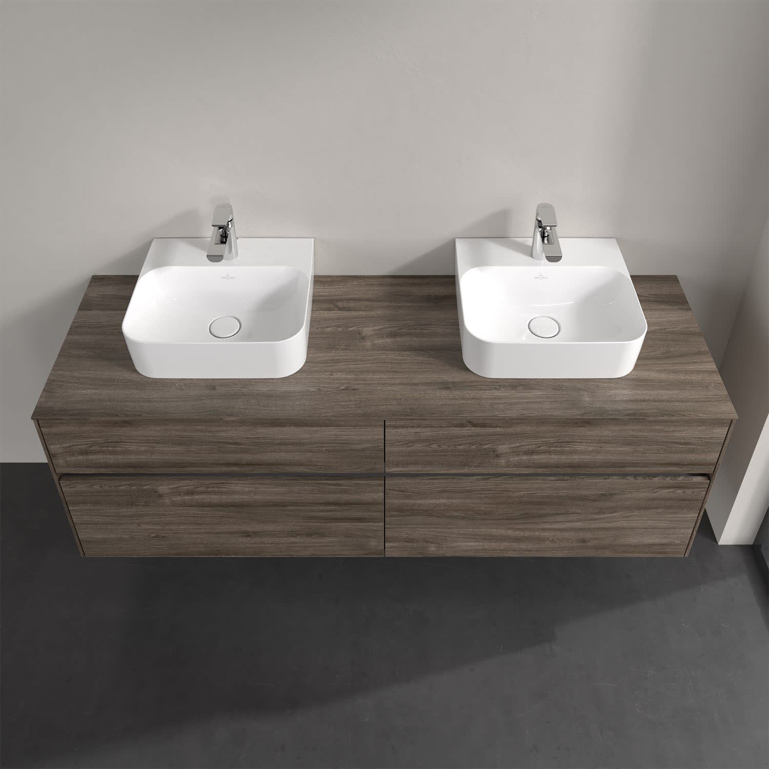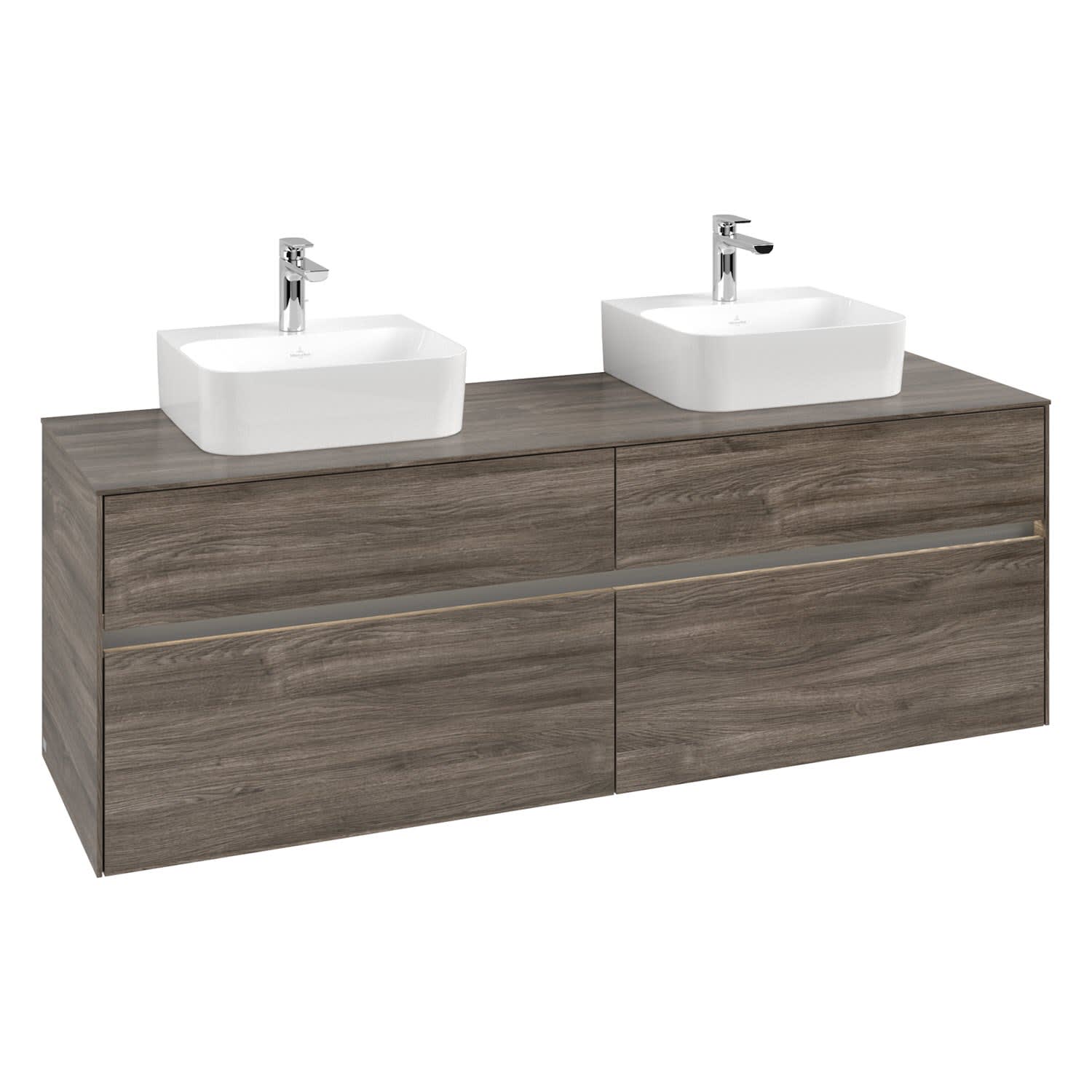 Villeroy & Boch Collaro Waschtischunterschrank 160 x 50 cm, mit 4 Auszügen und LED-Beleuchtung für 2 Finion Waschtische
