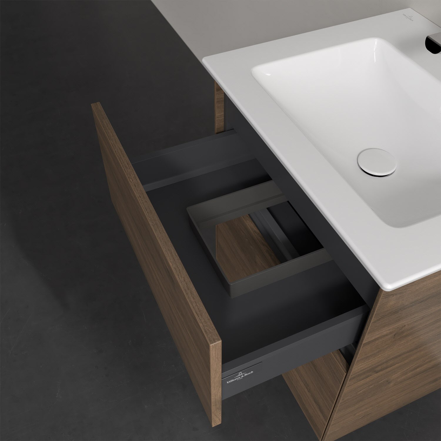 Villeroy & Boch Collaro Waschtischunterschrank 56 x 48 cm, mit 2 Auszügen und LED-Beleuchtung für Venticello Waschtisch