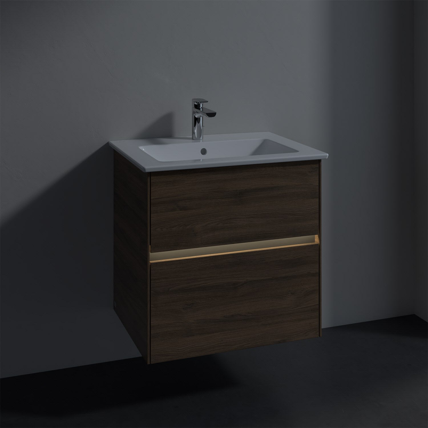 Villeroy & Boch Collaro Waschtischunterschrank 61 x 48 cm, mit 2 Auszügen und LED-Beleuchtung für Venticello Waschtisch