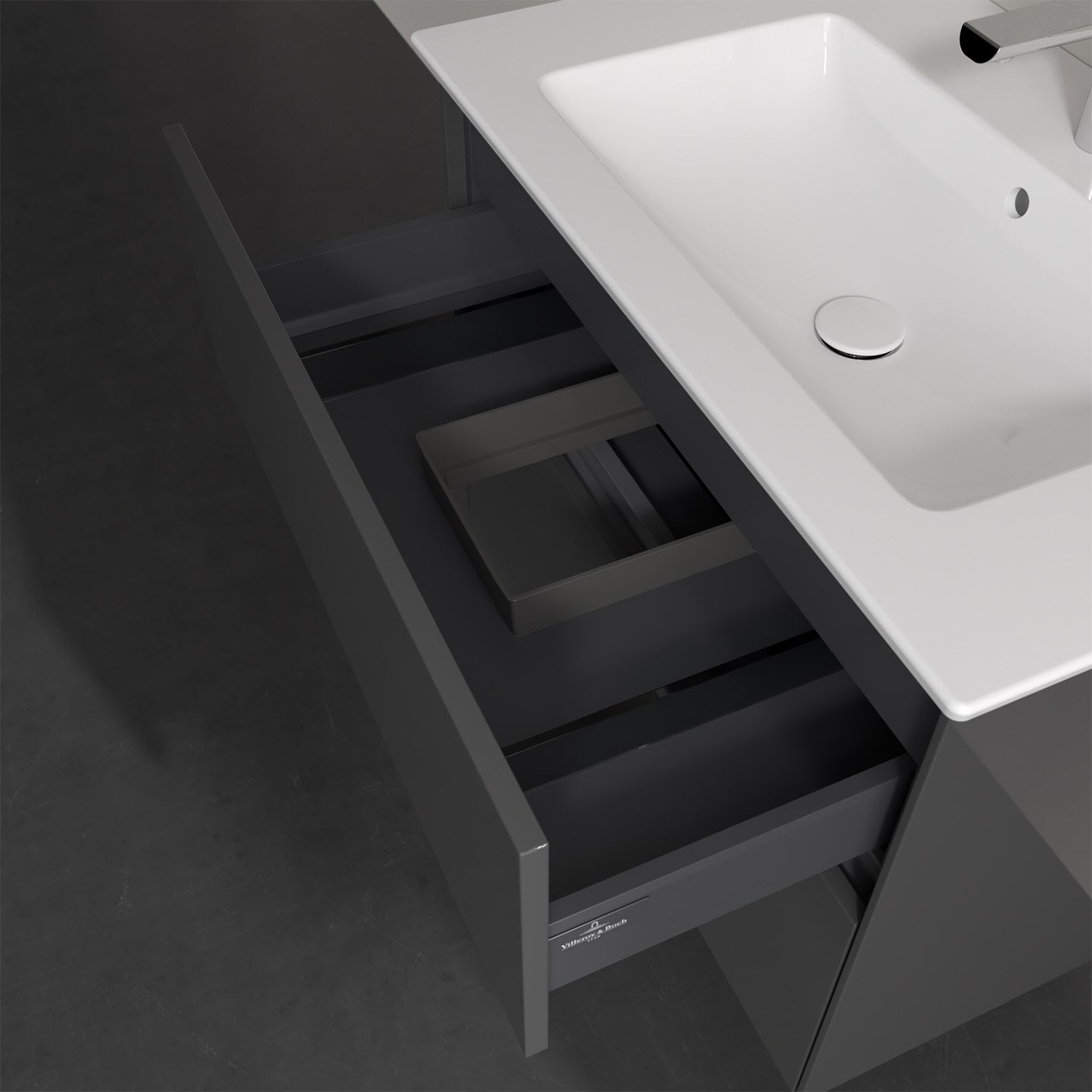 Villeroy & Boch Collaro Waschtischunterschrank 76 x 48 cm, mit 2 Auszügen und LED-Beleuchtung für Venticello Waschtisch