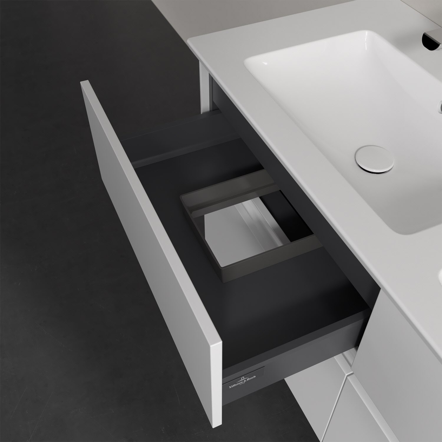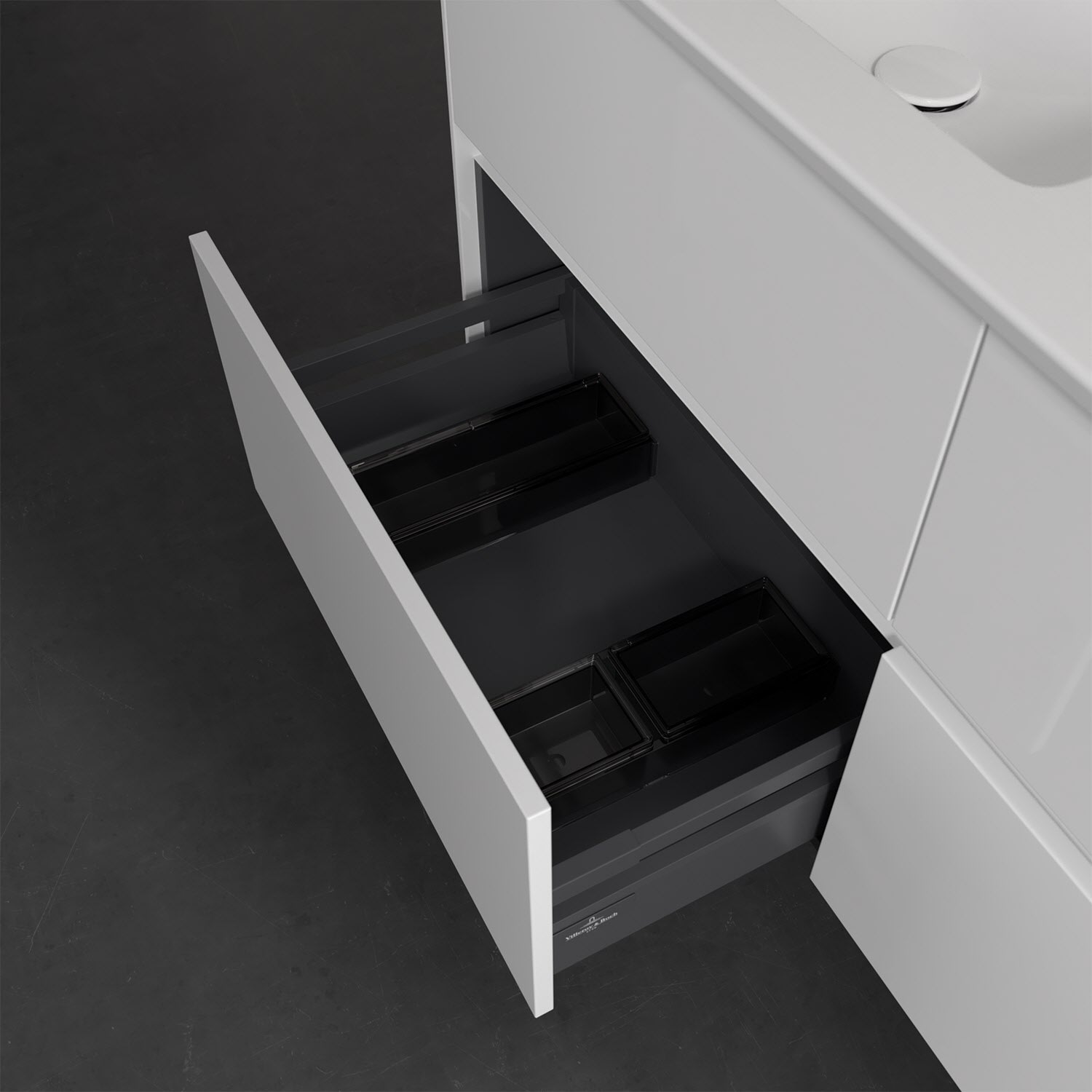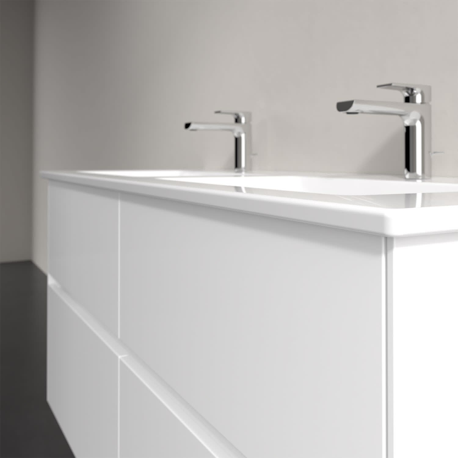 Stauraumwunder im zeitgemäßen Design: Der Villeroy & Boch Waschbeckenunterschrank aus der Collaro Kollektion eignet sich besonders für Familienbäder und bietet genau den Platz, der dort benötigt wird. Eine integrierte Griffleiste sorgt für eine schlichte, moderne Front. Im Inneren bietet das Möbelstück mit vier Auszügen erstaunlich viel Komfort – ermöglicht durch großzügiges Platzangebot und den integrierten Antirutschboden. Variabel setzbare Glasabtrennungen und mitgelieferte Accessory Boxen sorgen für den nötigen Überblick. Dank SoftClosing und Selbsteinzug lassen sich die Auszüge nach der Nutzung lautlos schließen. Für eine besonders leichte Pflege sorgt die widerstandsfähige Acryloberfläche.