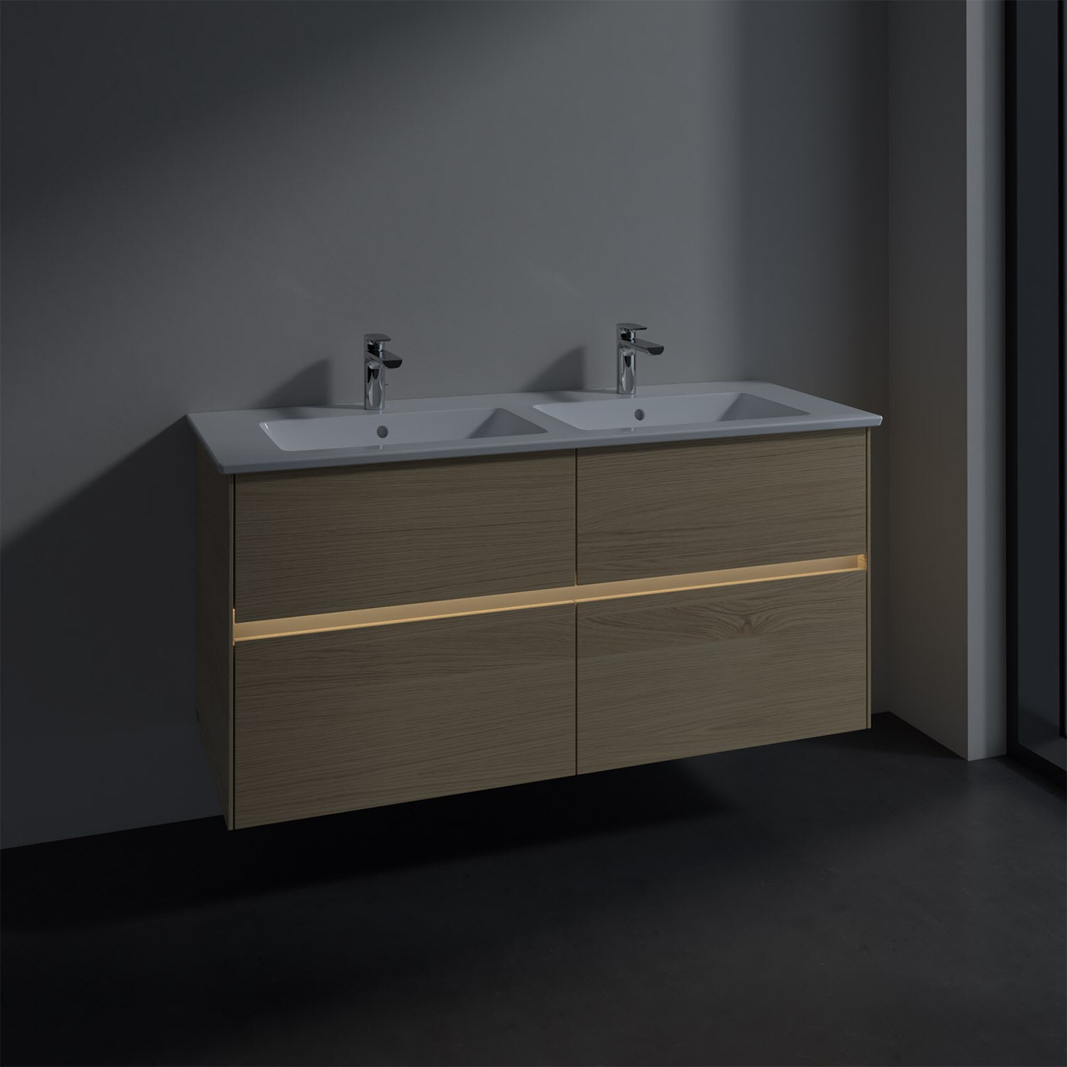 Villeroy & Boch Collaro Waschtischunterschrank 126 x 48 cm, mit 4 Auszügen und LED-Beleuchtung für Venticello Waschtisch
