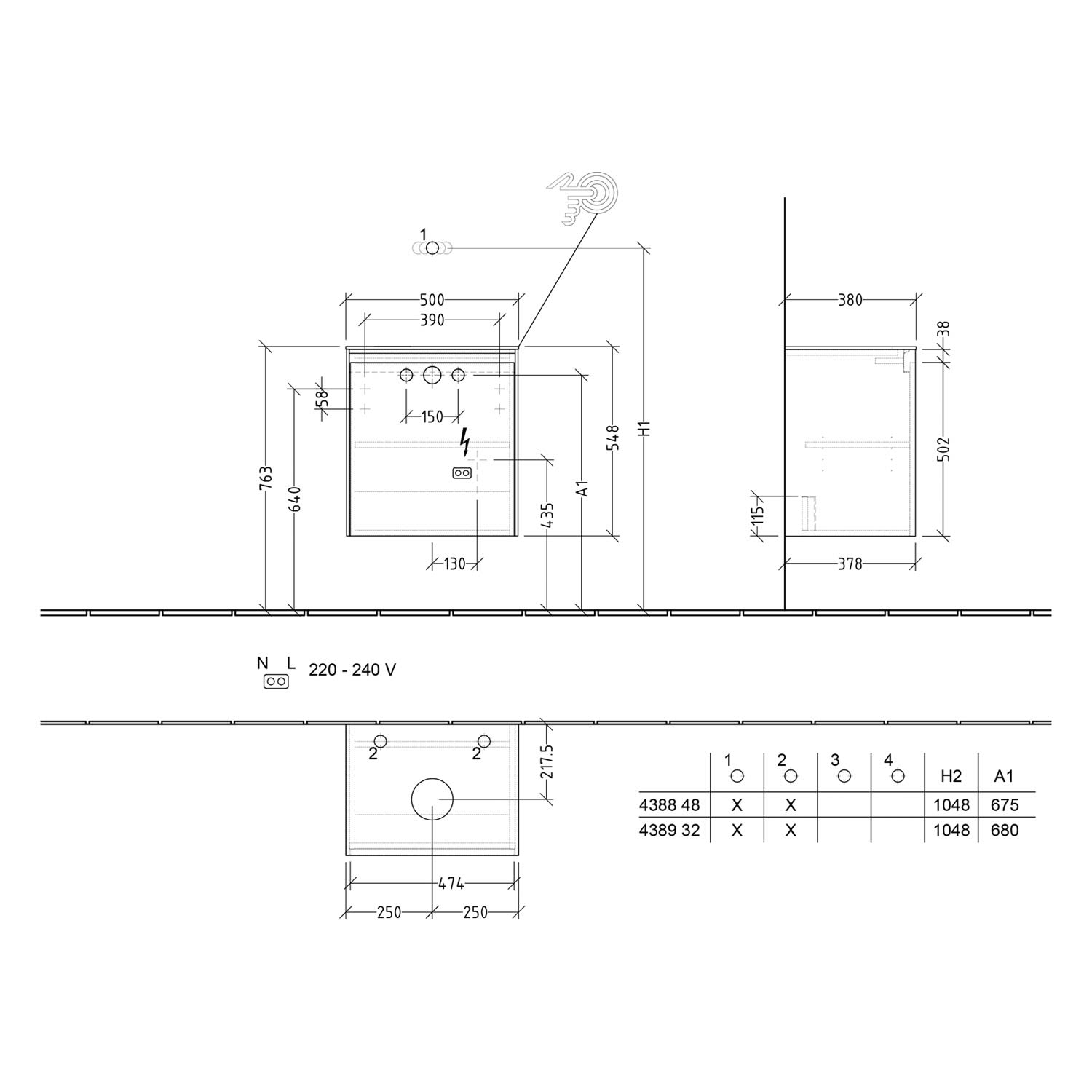 Position Waschtisch: