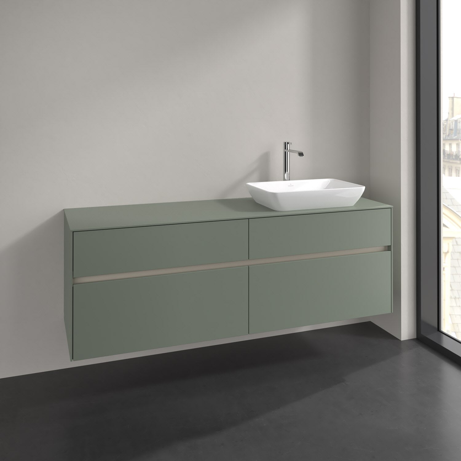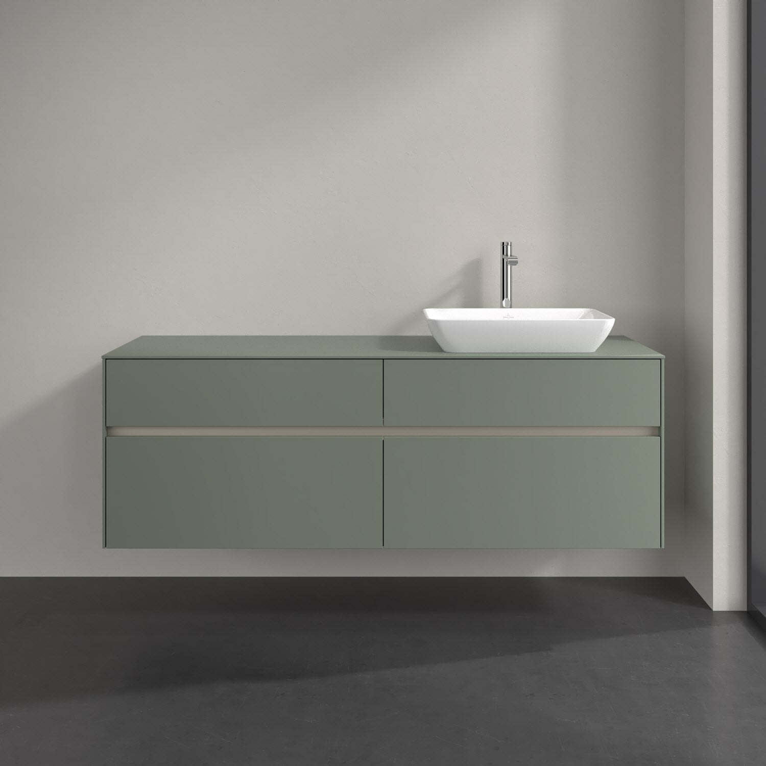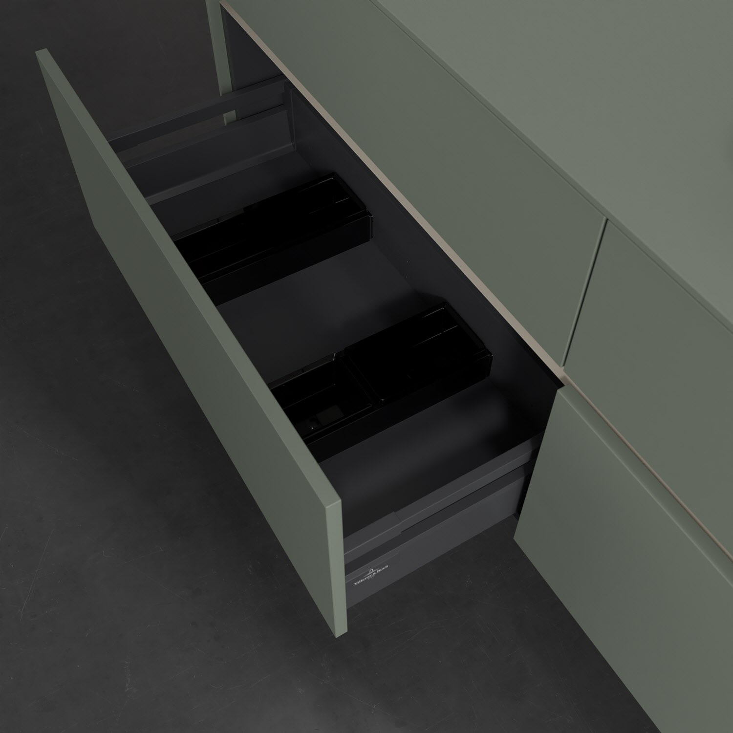Stauraumwunder im zeitgemäßen Design: Der Villeroy & Boch Waschbeckenunterschrank aus der Collaro Kollektion eignet sich besonders für Familienbäder und bietet genau den Platz, der dort benötigt wird. Stimmungsvolles Highlight der schlichten, modernen Front ist die integrierte Griffmulde mit stufenlos einstellbarer LED-Beleuchtung. Im Inneren bietet das Möbelstück mit vier Auszügen erstaunlich viel Komfort – ermöglicht durch großzügiges Platzangebot und den integrierten Antirutschboden. Variabel setzbare Glasabtrennungen und mitgelieferte Accessory Boxen sorgen für den nötigen Überblick. Dank SoftClosing und Selbsteinzug lassen sich die Auszüge nach der Nutzung lautlos schließen. Die Front ist mit einer hochwertigen Lackierung versehen, deren Anti-Fingerprint-Oberfläche unschönen Fingerabdrücken vorbeugt.