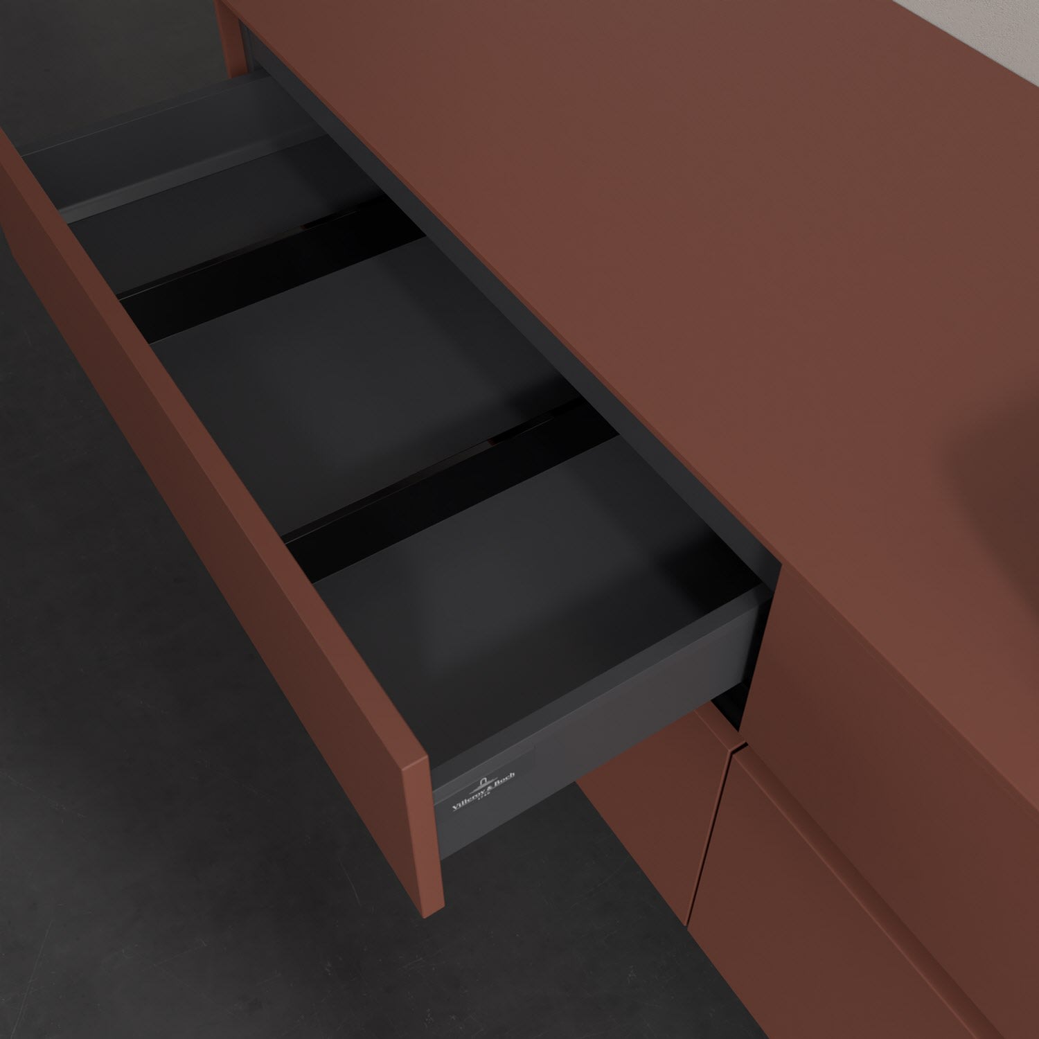 Stauraumwunder im zeitgemäßen Design: Der Villeroy & Boch Waschbeckenunterschrank aus der Collaro Kollektion eignet sich besonders für Familienbäder und bietet genau den Platz, der dort benötigt wird. Stimmungsvolles Highlight der schlichten, modernen Front ist die integrierte Griffmulde mit stufenlos einstellbarer LED-Beleuchtung. Im Inneren bietet das Möbelstück mit vier Auszügen erstaunlich viel Komfort – ermöglicht durch großzügiges Platzangebot und den integrierten Antirutschboden. Variabel setzbare Glasabtrennungen und mitgelieferte Accessory Boxen sorgen für den nötigen Überblick. Dank SoftClosing und Selbsteinzug lassen sich die Auszüge nach der Nutzung lautlos schließen. Die Front ist mit einer hochwertigen Lackierung versehen, deren Anti-Fingerprint-Oberfläche unschönen Fingerabdrücken vorbeugt.