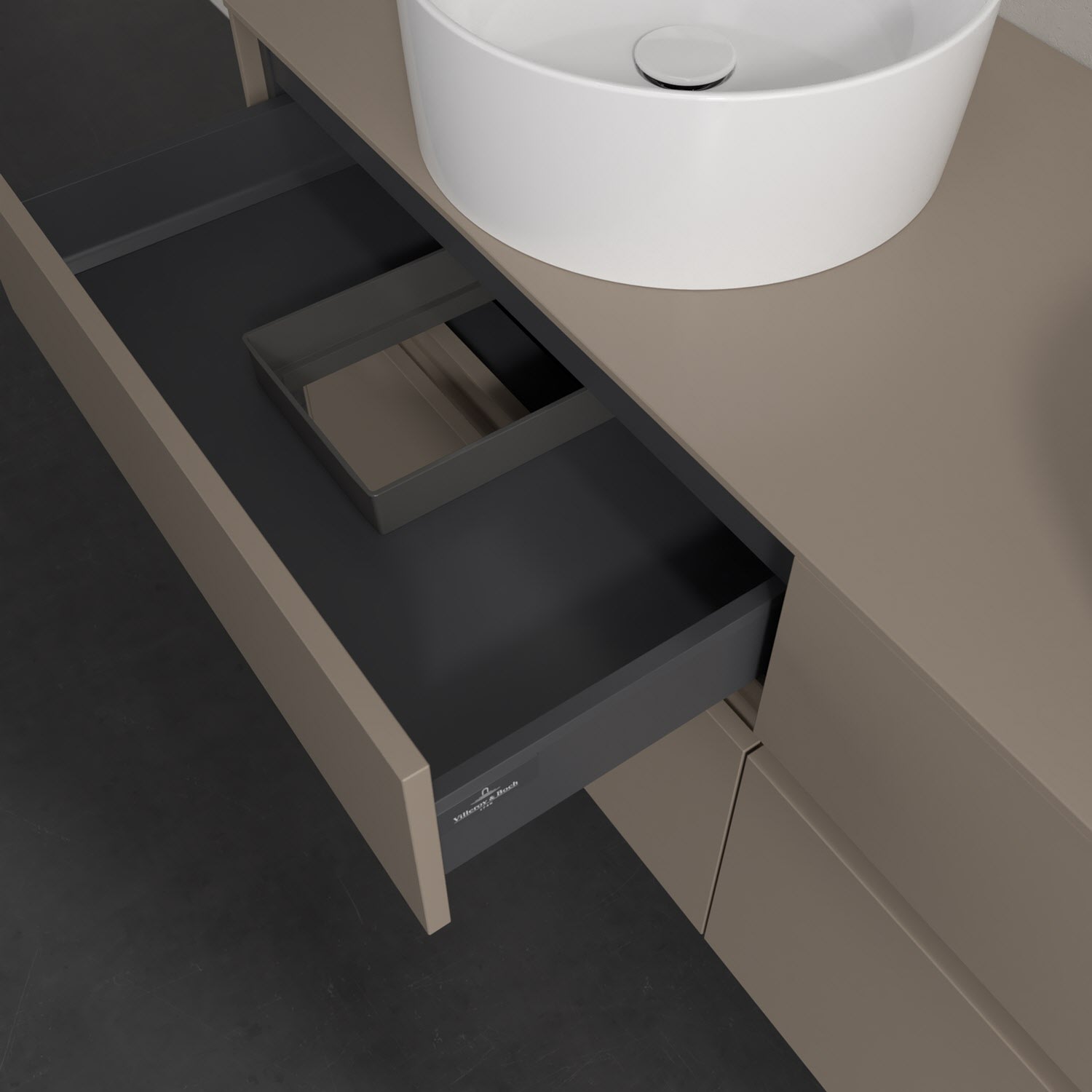 - kein Umfallen oder Verrutschen von Pflegeprodukten in den Schubladen dank rutschhemmendem Boden