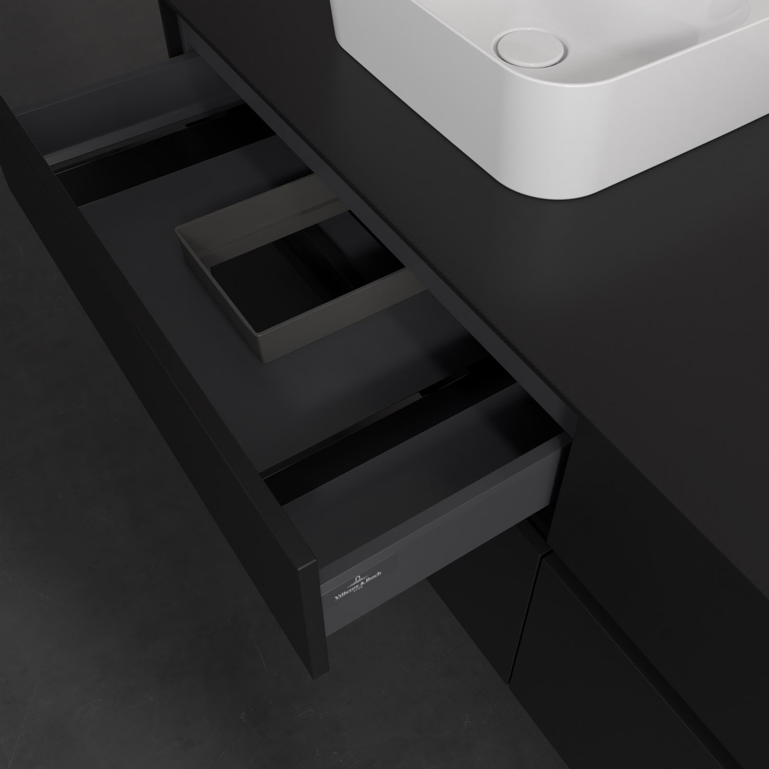 Stauraumwunder im zeitgemäßen Design: Der Villeroy & Boch Waschbeckenunterschrank aus der Collaro Kollektion eignet sich besonders für Familienbäder und bietet genau den Platz, der dort benötigt wird. Stimmungsvolles Highlight der schlichten, modernen Front ist die integrierte Griffmulde mit stufenlos einstellbarer LED-Beleuchtung. Im Inneren bietet das Möbelstück mit vier Auszügen erstaunlich viel Komfort – ermöglicht durch großzügiges Platzangebot und den integrierten Antirutschboden. Variabel setzbare Glasabtrennungen und mitgelieferte Accessory Boxen sorgen für den nötigen Überblick. Dank SoftClosing und Selbsteinzug lassen sich die Auszüge nach der Nutzung lautlos schließen. Die Front ist mit einer hochwertigen Lackierung versehen, deren Anti-Fingerprint-Oberfläche unschönen Fingerabdrücken vorbeugt.