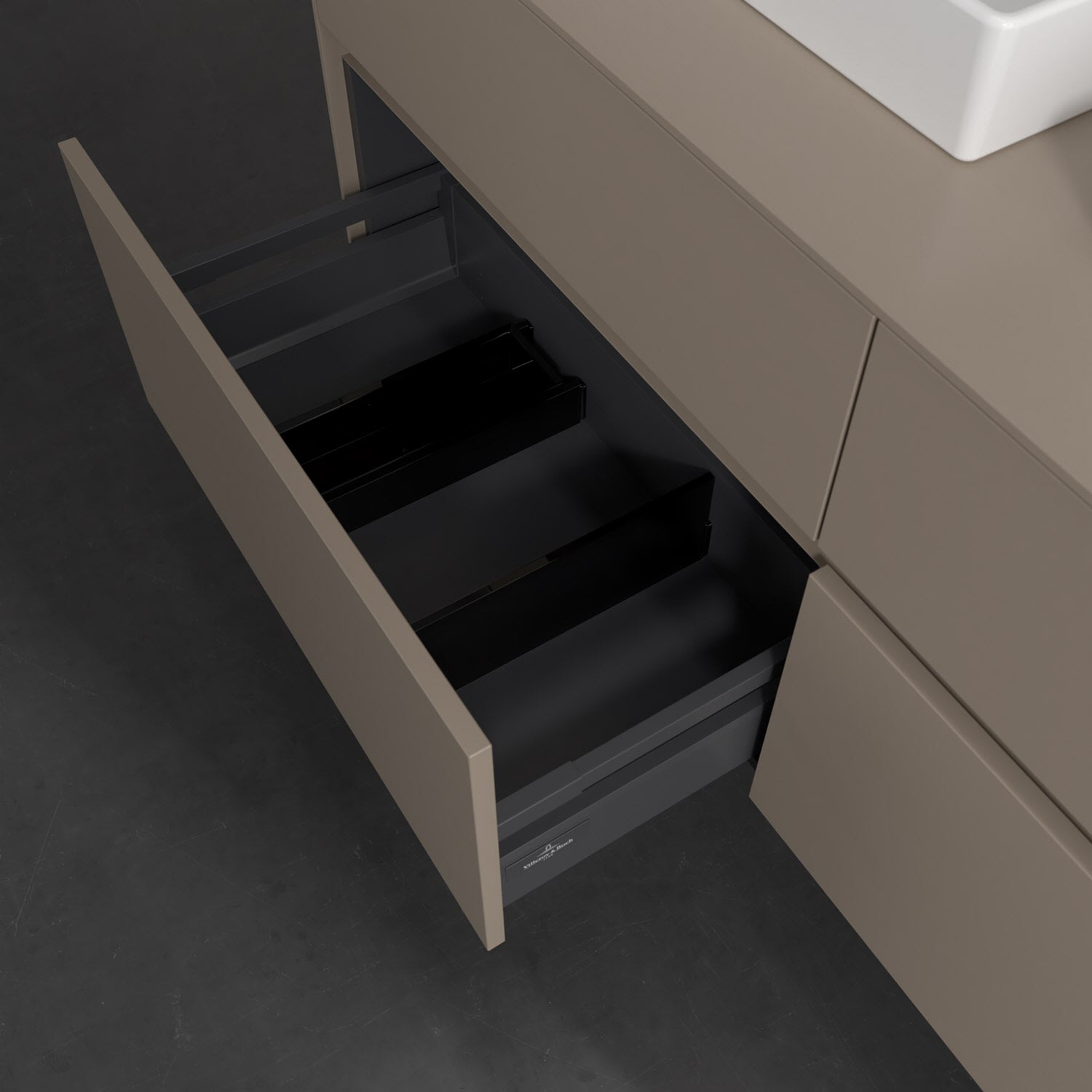 - kein Umfallen oder Verrutschen von Pflegeprodukten in den Schubladen dank rutschhemmendem Boden