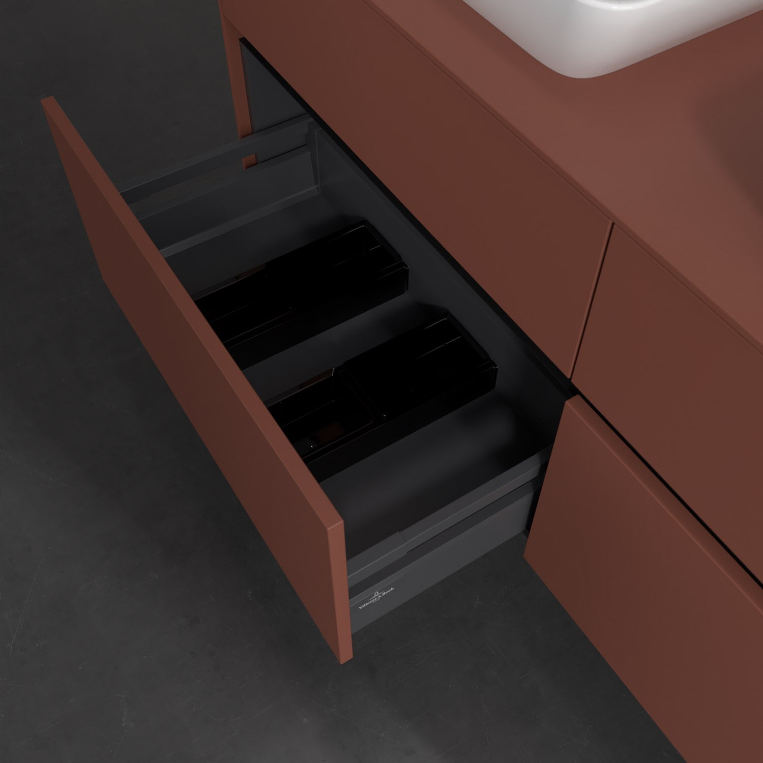 Stauraumwunder im zeitgemäßen Design: Der Villeroy & Boch Waschbeckenunterschrank aus der Collaro Kollektion eignet sich besonders für Familienbäder und bietet genau den Platz, der dort benötigt wird. Eine integrierte Griffleiste sorgt für eine schlichte, moderne Front. Steuern lässt sich das Licht über einen Touch-Sensor seitlich am Unterschrank. Im Inneren bietet das Möbelstück mit vier Auszügen erstaunlich viel Komfort – ermöglicht durch großzügiges Platzangebot und den integrierten Antirutschboden. Variabel setzbare Glasabtrennungen und mitgelieferte Accessory Boxen sorgen für den nötigen Überblick. Dank SoftClosing und Selbsteinzug lassen sich die Auszüge nach der Nutzung lautlos schließen. Die Front ist mit einer hochwertigen Lackierung versehen, deren Anti-Fingerprint-Oberfläche unschönen Fingerabdrücken vorbeugt.