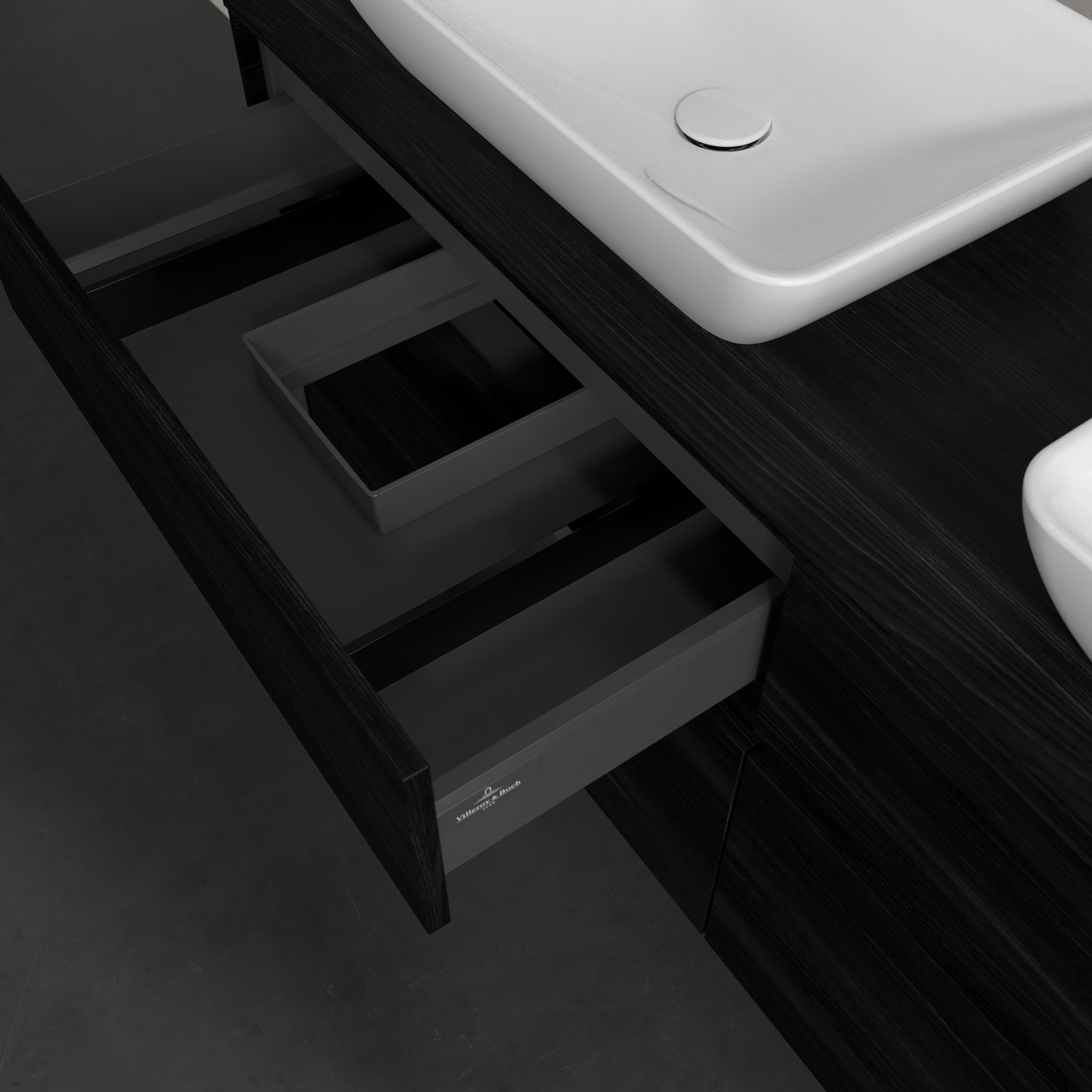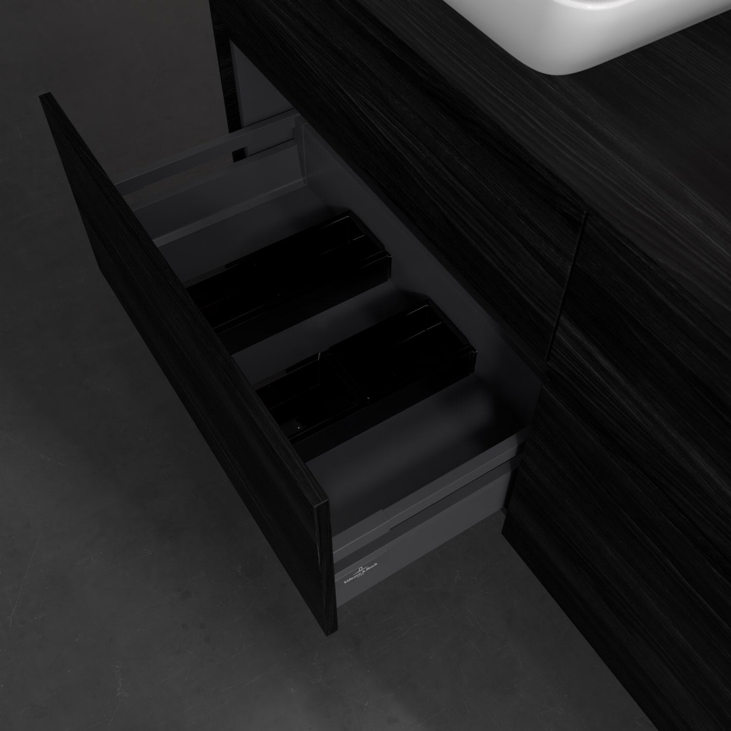 Stauraumwunder im zeitgemäßen Design: Der Villeroy & Boch Waschbeckenunterschrank aus der Collaro Kollektion eignet sich besonders für Familienbäder und bietet genau den Platz, der dort benötigt wird. Eine integrierte Griffleiste sorgt für eine schlichte, moderne Front. Steuern lässt sich das Licht über einen Touch-Sensor seitlich am Unterschrank. Im Inneren bietet das Möbelstück mit vier Auszügen erstaunlich viel Komfort – ermöglicht durch großzügiges Platzangebot und den integrierten Antirutschboden. Variabel setzbare Glasabtrennungen und mitgelieferte Accessory Boxen sorgen für den nötigen Überblick. Dank SoftClosing und Selbsteinzug lassen sich die Auszüge nach der Nutzung lautlos schließen. Die Front ist mit einer hochwertigen Lackierung versehen, deren Anti-Fingerprint-Oberfläche unschönen Fingerabdrücken vorbeugt.
