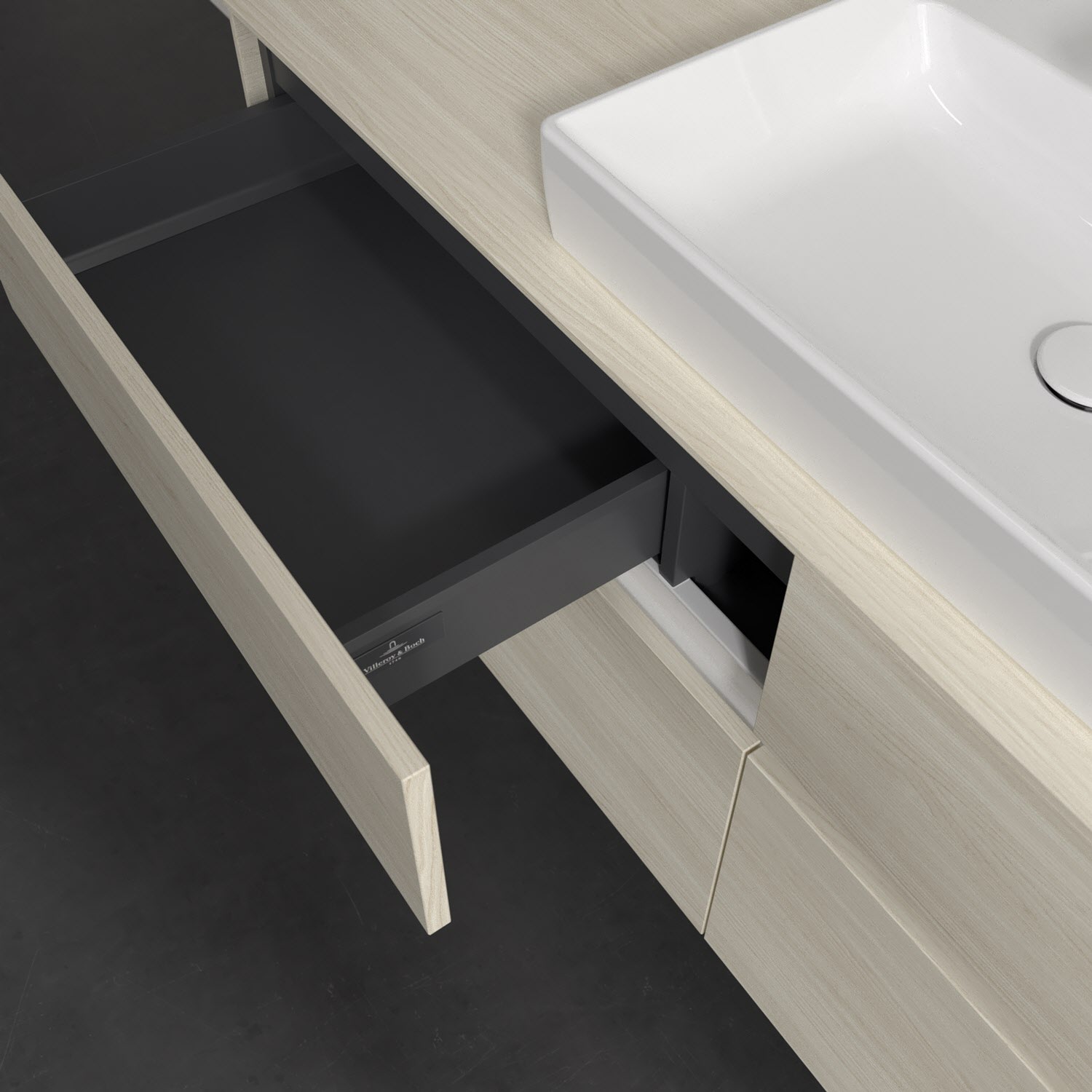 - kein Umfallen oder Verrutschen von Pflegeprodukten in den Schubladen dank rutschhemmendem Boden