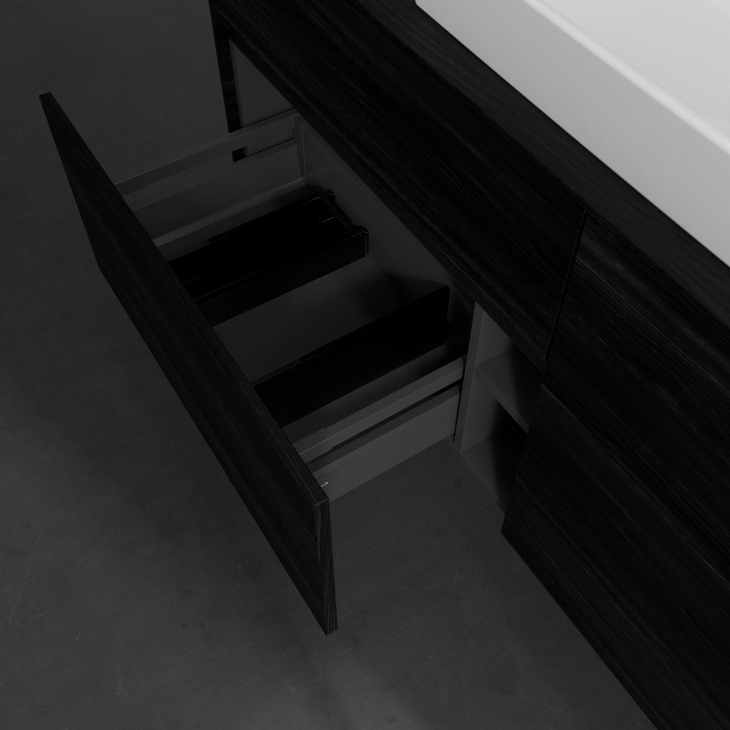 - kein Umfallen oder Verrutschen von Pflegeprodukten in den Schubladen dank rutschhemmendem Boden
