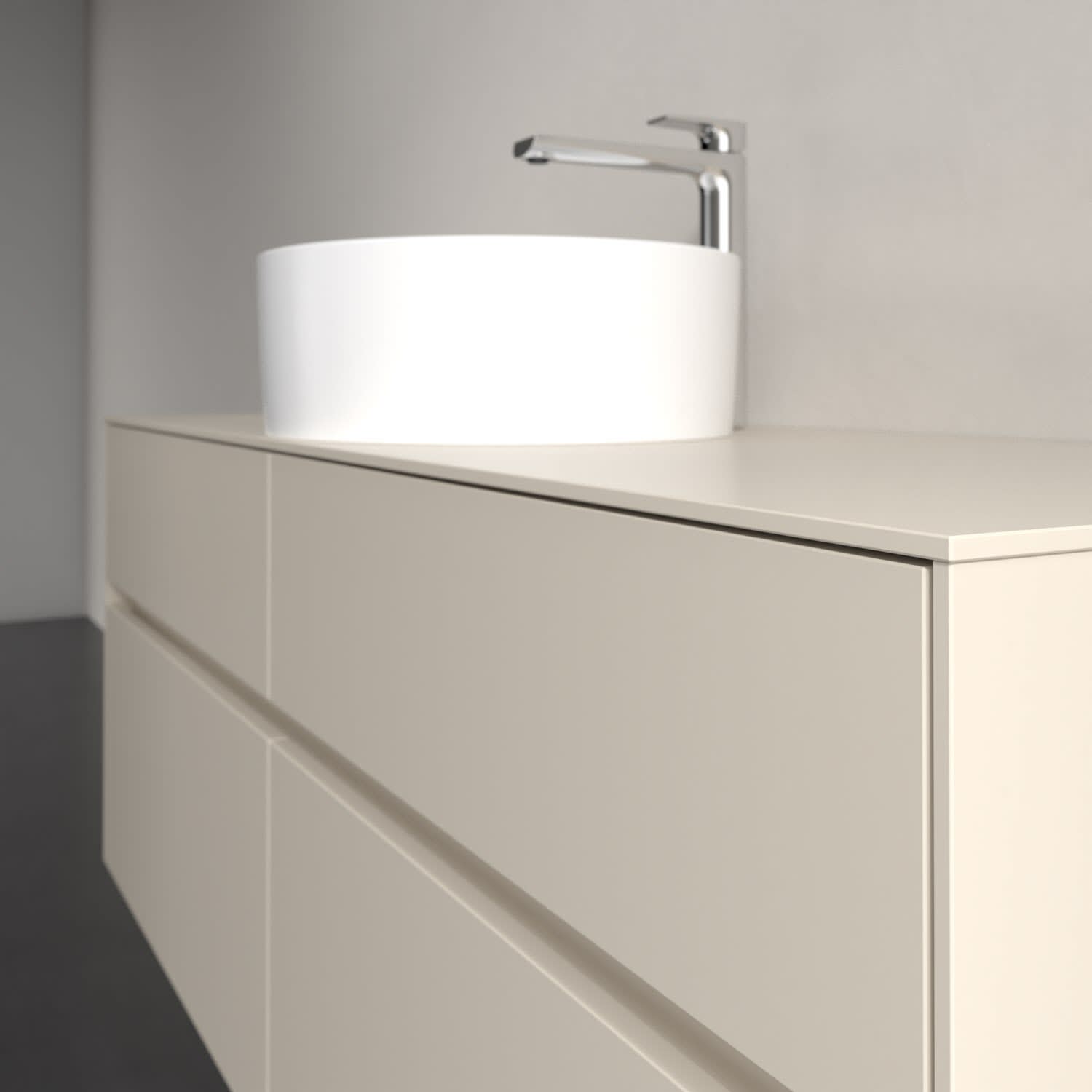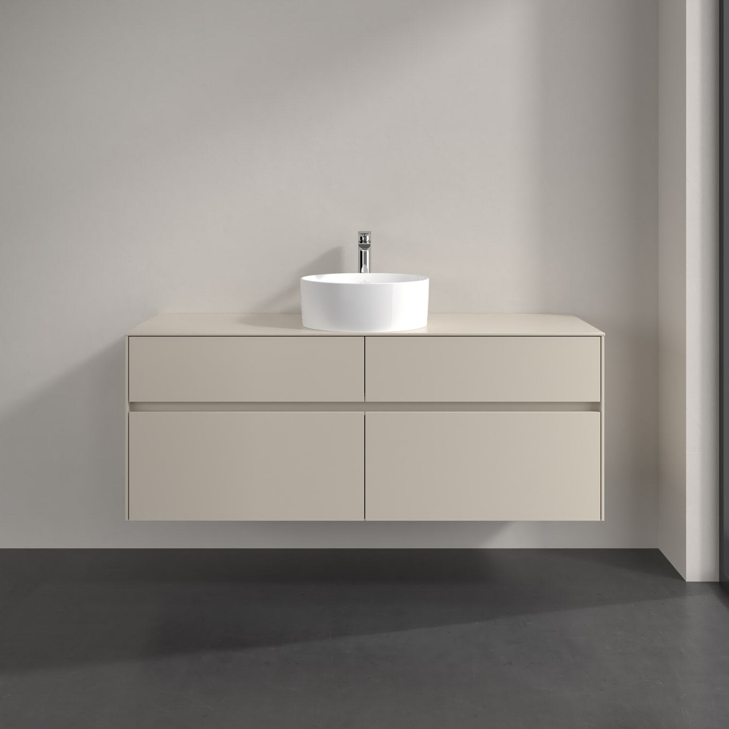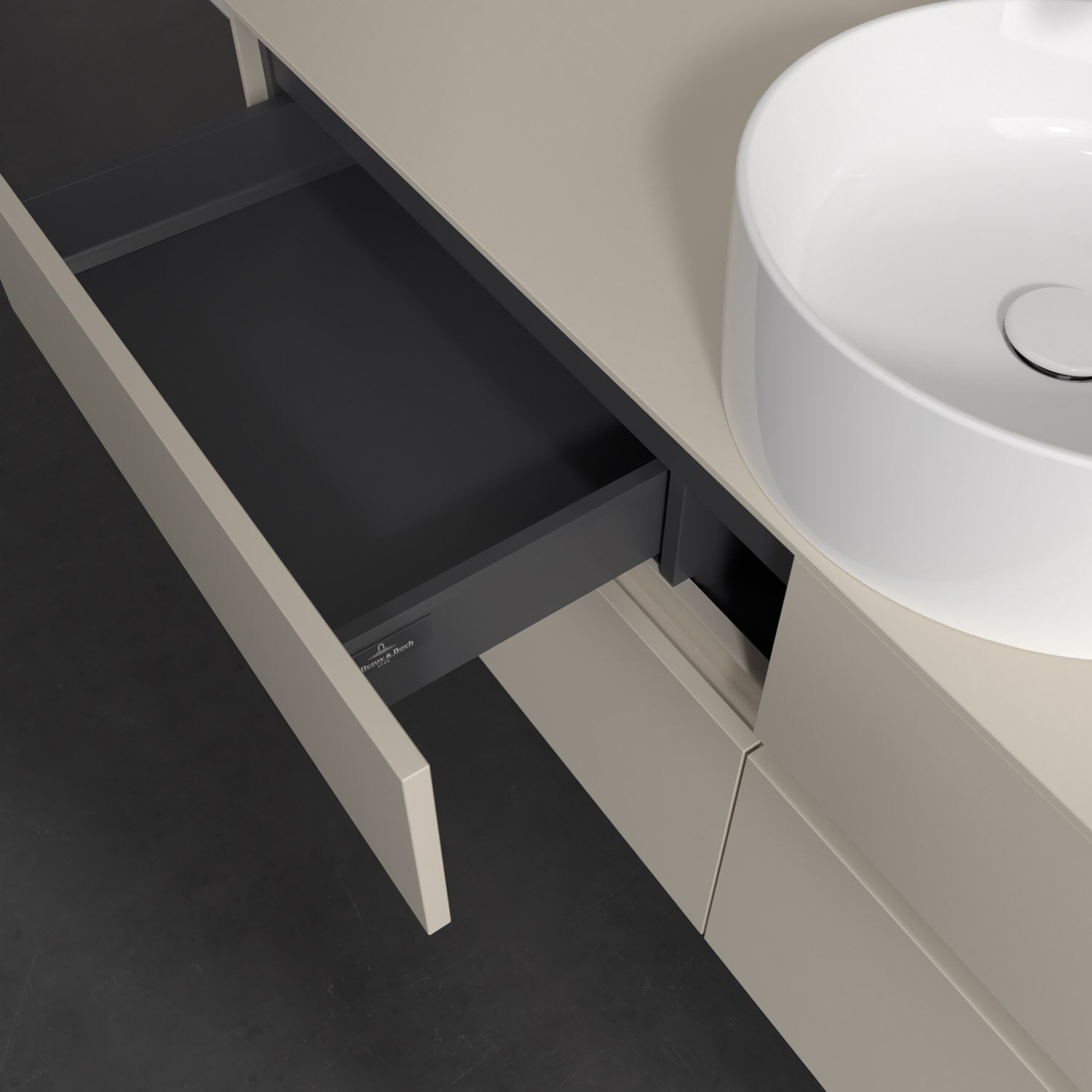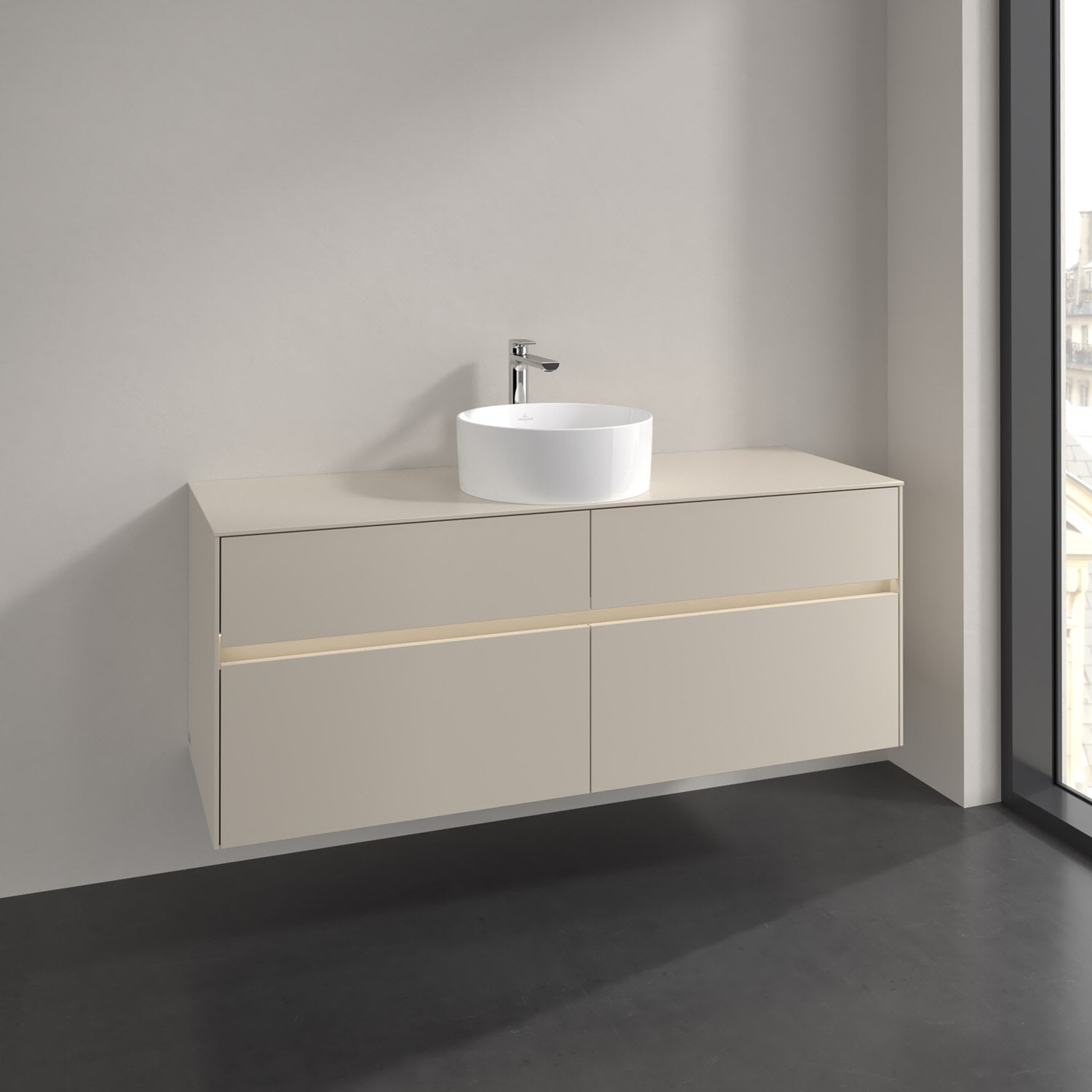 Stauraumwunder im zeitgemäßen Design: Der Villeroy & Boch Waschbeckenunterschrank aus der Collaro Kollektion eignet sich besonders für Familienbäder und bietet genau den Platz, der dort benötigt wird. Stimmungsvolles Highlight der schlichten, modernen Front ist die integrierte Griffmulde mit stufenlos einstellbarer LED-Beleuchtung. Steuern lässt sie sich über einen Touch-Sensor seitlich am Unterschrank. Im Inneren bietet das Möbelstück mit vier Auszügen erstaunlich viel Komfort – ermöglicht durch großzügiges Platzangebot und den integrierten Antirutschboden. Variabel setzbare Glasabtrennungen und mitgelieferte Accessory Boxen sorgen für den nötigen Überblick. Dank SoftClosing und Selbsteinzug lassen sich die Auszüge nach der Nutzung lautlos schließen. Die Front ist mit einer hochwertigen Lackierung versehen, deren Anti-Fingerprint-Oberfläche unschönen Fingerabdrücken vorbeugt.