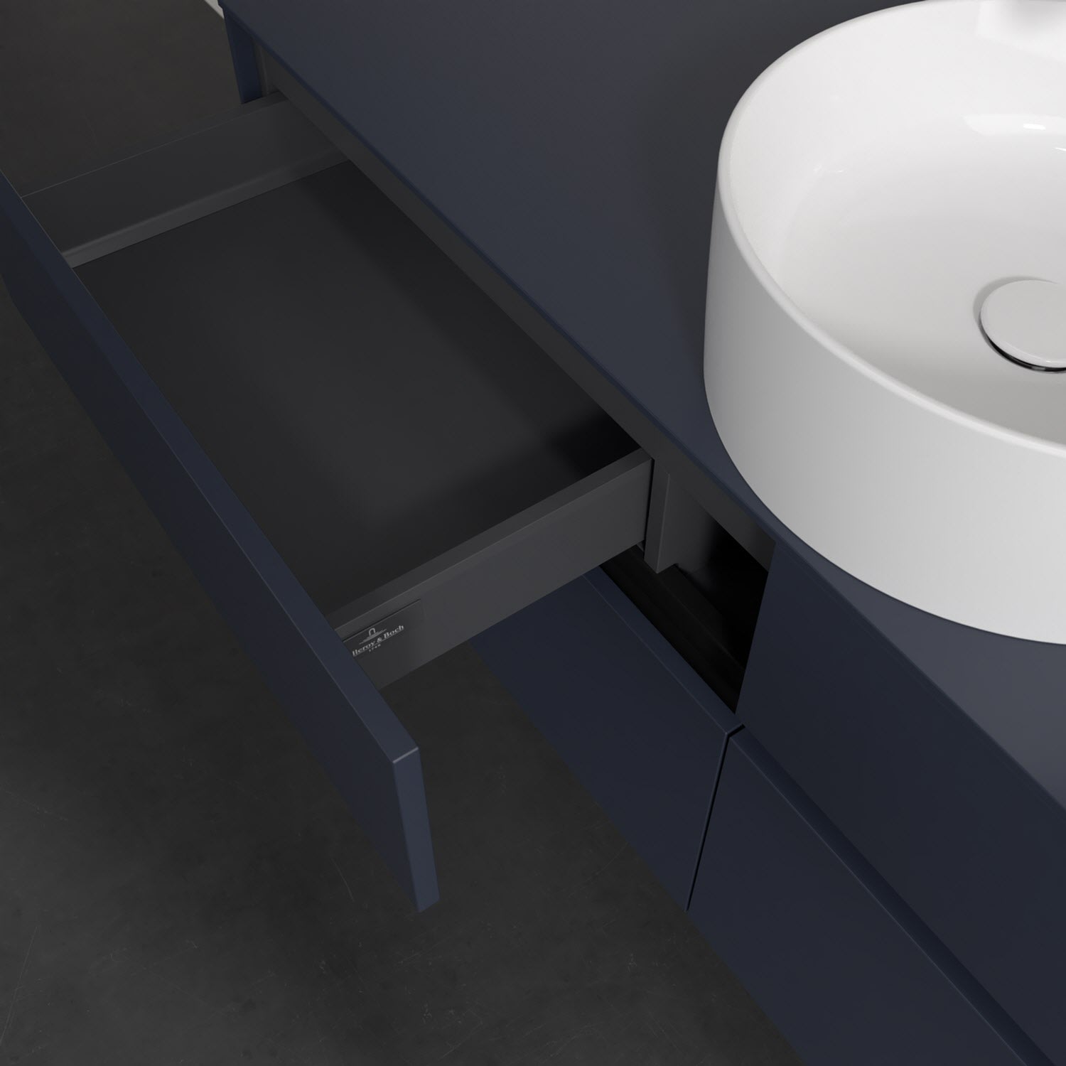 Stauraumwunder im zeitgemäßen Design: Der Villeroy & Boch Waschbeckenunterschrank aus der Collaro Kollektion eignet sich besonders für Familienbäder und bietet genau den Platz, der dort benötigt wird. Stimmungsvolles Highlight der schlichten, modernen Front ist die integrierte Griffmulde mit stufenlos einstellbarer LED-Beleuchtung. Steuern lässt sie sich über einen Touch-Sensor seitlich am Unterschrank. Im Inneren bietet das Möbelstück mit vier Auszügen erstaunlich viel Komfort – ermöglicht durch großzügiges Platzangebot und den integrierten Antirutschboden. Variabel setzbare Glasabtrennungen und mitgelieferte Accessory Boxen sorgen für den nötigen Überblick. Dank SoftClosing und Selbsteinzug lassen sich die Auszüge nach der Nutzung lautlos schließen. Die Front ist mit einer hochwertigen Lackierung versehen, deren Anti-Fingerprint-Oberfläche unschönen Fingerabdrücken vorbeugt.