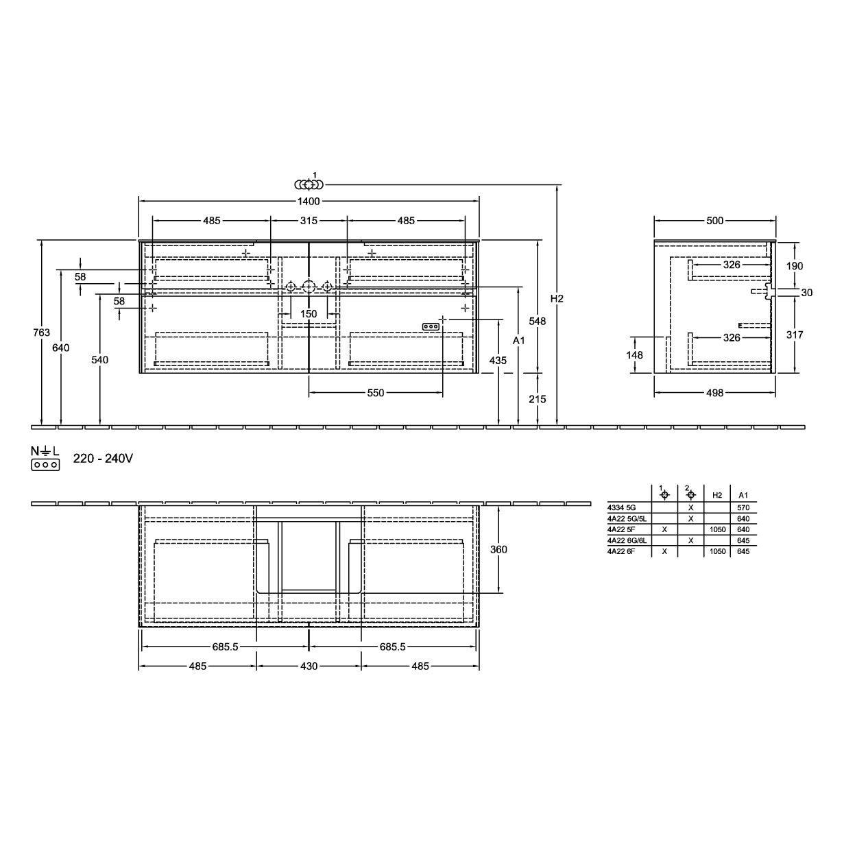 Villeroy & Boch Collaro Waschtischunterschrank 140 x 54,8 cm , mit 4 Auszügen