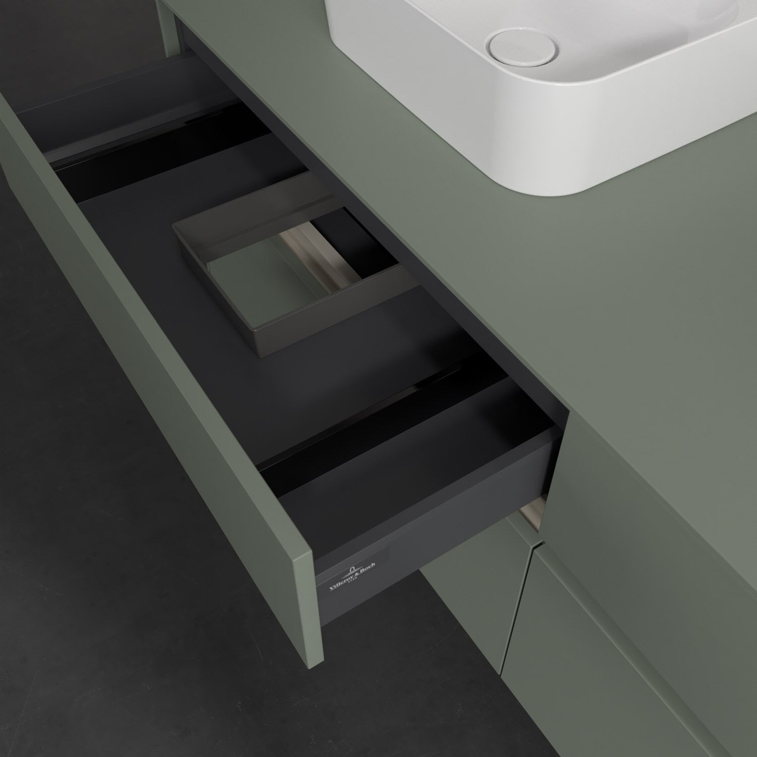 Stauraumwunder im zeitgemäßen Design: Der Villeroy & Boch Waschbeckenunterschrank aus der Collaro Kollektion eignet sich besonders für Familienbäder und bietet genau den Platz, der dort benötigt wird. Eine integrierte Griffleiste sorgt für eine schlichte, moderne Front. Steuern lässt sich das Licht über einen Touch-Sensor seitlich am Unterschrank. Im Inneren bietet das Möbelstück mit vier Auszügen erstaunlich viel Komfort – ermöglicht durch großzügiges Platzangebot und den integrierten Antirutschboden. Variabel setzbare Glasabtrennungen und mitgelieferte Accessory Boxen sorgen für den nötigen Überblick. Dank SoftClosing und Selbsteinzug lassen sich die Auszüge nach der Nutzung lautlos schließen. Die Front ist mit einer hochwertigen Lackierung versehen, deren Anti-Fingerprint-Oberfläche unschönen Fingerabdrücken vorbeugt.