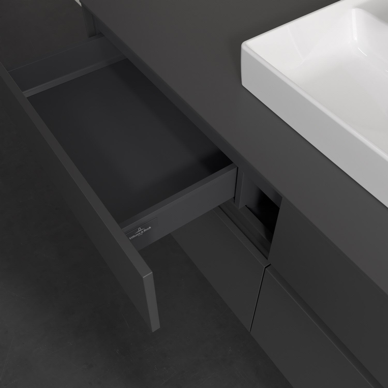 Stauraumwunder im zeitgemäßen Design: Der Villeroy & Boch Waschbeckenunterschrank aus der Collaro Kollektion eignet sich besonders für Familienbäder und bietet genau den Platz, der dort benötigt wird. Eine integrierte Griffleiste sorgt für eine schlichte, moderne Front. Steuern lässt sich das Licht über einen Touch-Sensor seitlich am Unterschrank. Im Inneren bietet das Möbelstück mit vier Auszügen erstaunlich viel Komfort – ermöglicht durch großzügiges Platzangebot und den integrierten Antirutschboden. Variabel setzbare Glasabtrennungen und mitgelieferte Accessory Boxen sorgen für den nötigen Überblick. Dank SoftClosing und Selbsteinzug lassen sich die Auszüge nach der Nutzung lautlos schließen. Die Front ist mit einer hochwertigen Lackierung versehen, deren Anti-Fingerprint-Oberfläche unschönen Fingerabdrücken vorbeugt.