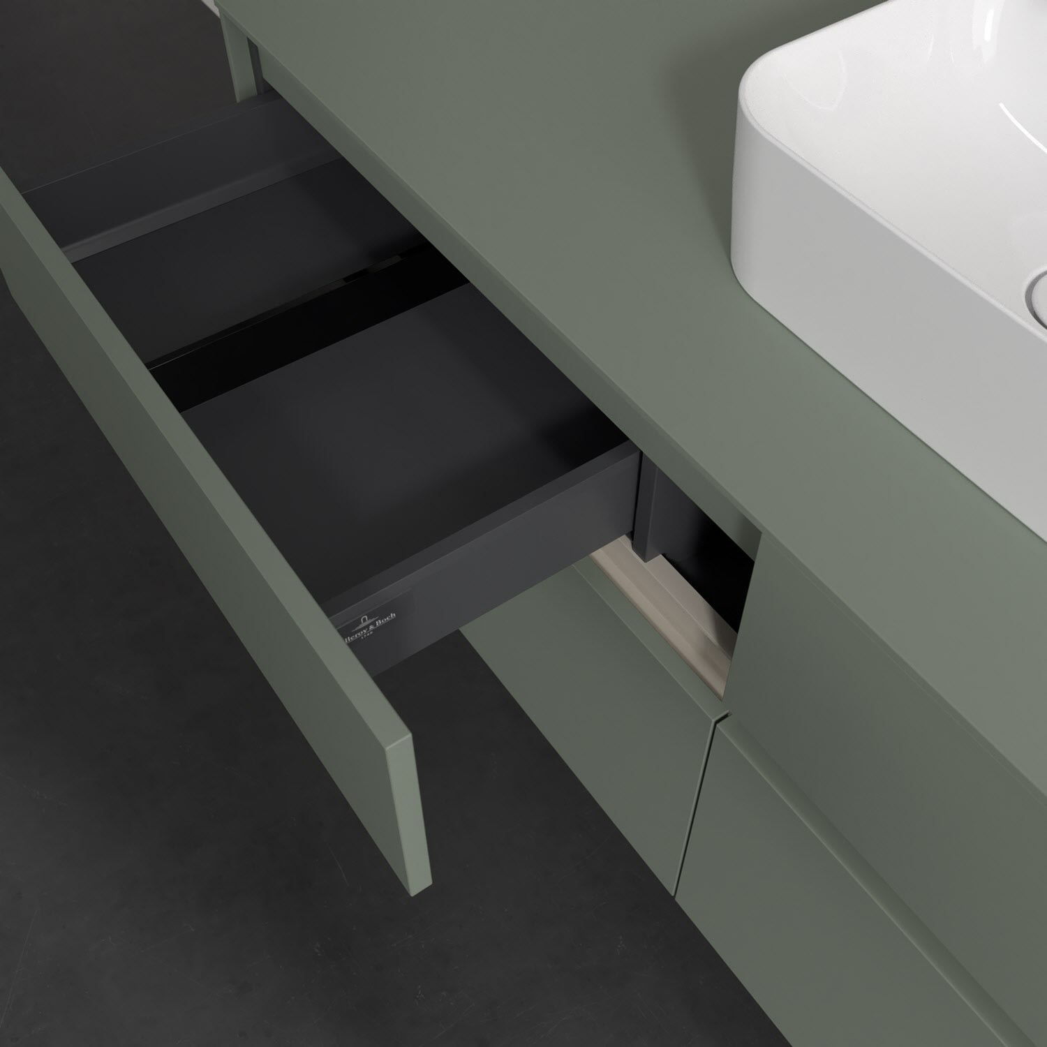 Stauraumwunder im zeitgemäßen Design: Der Villeroy & Boch Waschbeckenunterschrank aus der Collaro Kollektion eignet sich besonders für Familienbäder und bietet genau den Platz, der dort benötigt wird. Stimmungsvolles Highlight der schlichten, modernen Front ist die integrierte Griffmulde mit stufenlos einstellbarer LED-Beleuchtung. Im Inneren bietet das Möbelstück mit vier Auszügen erstaunlich viel Komfort – ermöglicht durch großzügiges Platzangebot und den integrierten Antirutschboden. Variabel setzbare Glasabtrennungen und mitgelieferte Accessory Boxen sorgen für den nötigen Überblick. Dank SoftClosing und Selbsteinzug lassen sich die Auszüge nach der Nutzung lautlos schließen. Die Front ist mit einer hochwertigen Lackierung versehen, deren Anti-Fingerprint-Oberfläche unschönen Fingerabdrücken vorbeugt.