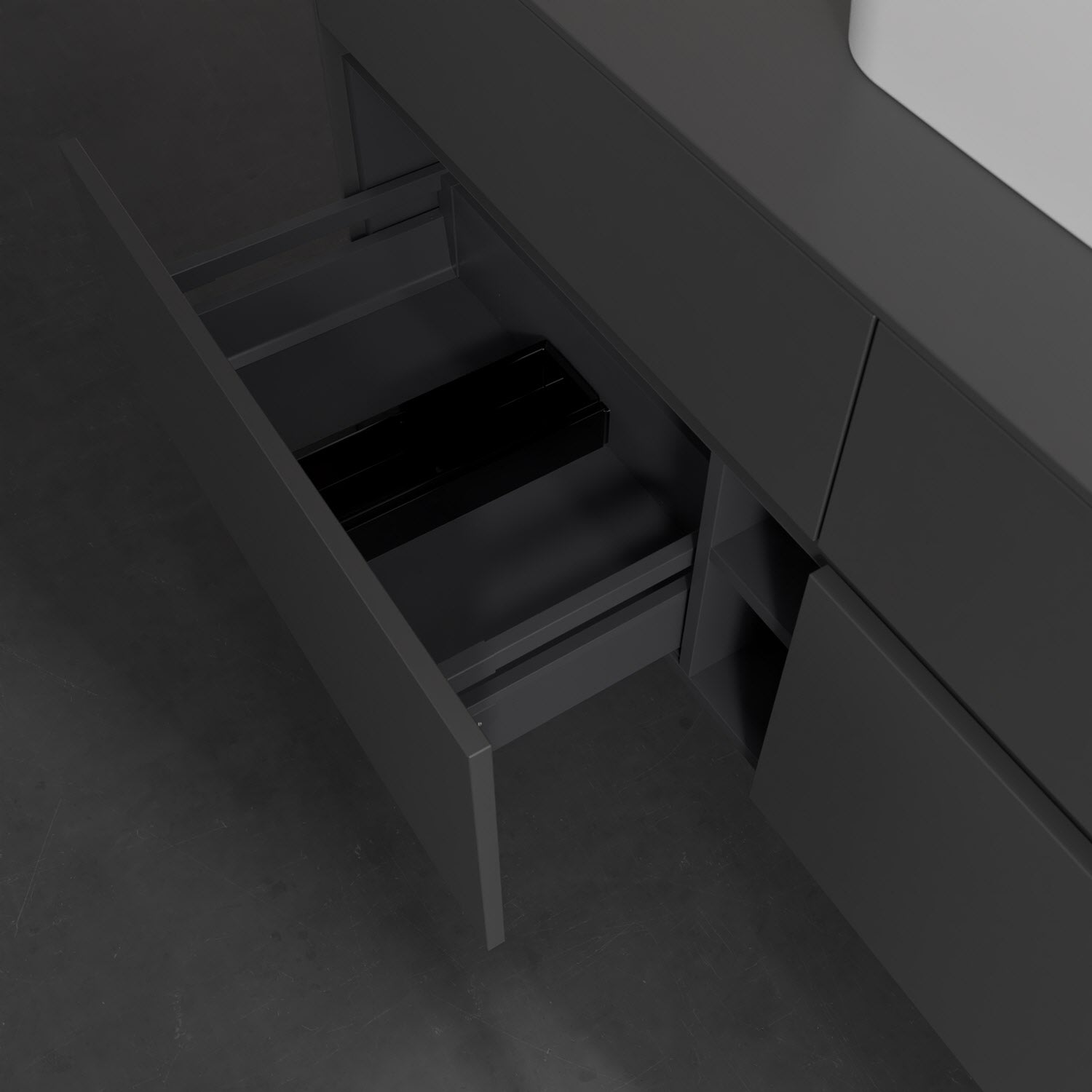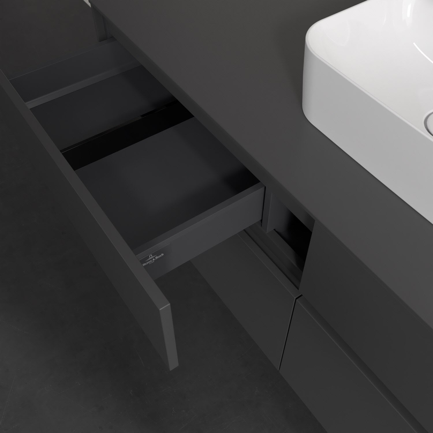 Stauraumwunder im zeitgemäßen Design: Der Villeroy & Boch Waschbeckenunterschrank aus der Collaro Kollektion eignet sich besonders für Familienbäder und bietet genau den Platz, der dort benötigt wird. Eine integrierte Griffleiste sorgt für eine schlichte, moderne Front. Steuern lässt sich das Licht über einen Touch-Sensor seitlich am Unterschrank. Im Inneren bietet das Möbelstück mit vier Auszügen erstaunlich viel Komfort – ermöglicht durch großzügiges Platzangebot und den integrierten Antirutschboden. Variabel setzbare Glasabtrennungen und mitgelieferte Accessory Boxen sorgen für den nötigen Überblick. Dank SoftClosing und Selbsteinzug lassen sich die Auszüge nach der Nutzung lautlos schließen. Die Front ist mit einer hochwertigen Lackierung versehen, deren Anti-Fingerprint-Oberfläche unschönen Fingerabdrücken vorbeugt.
