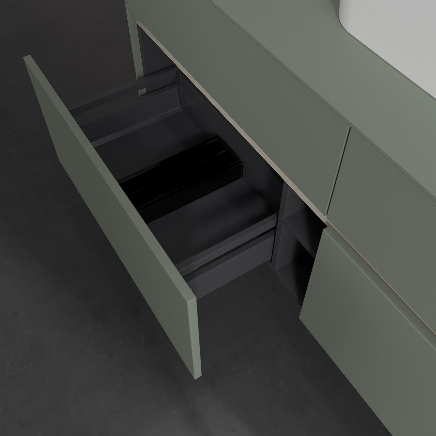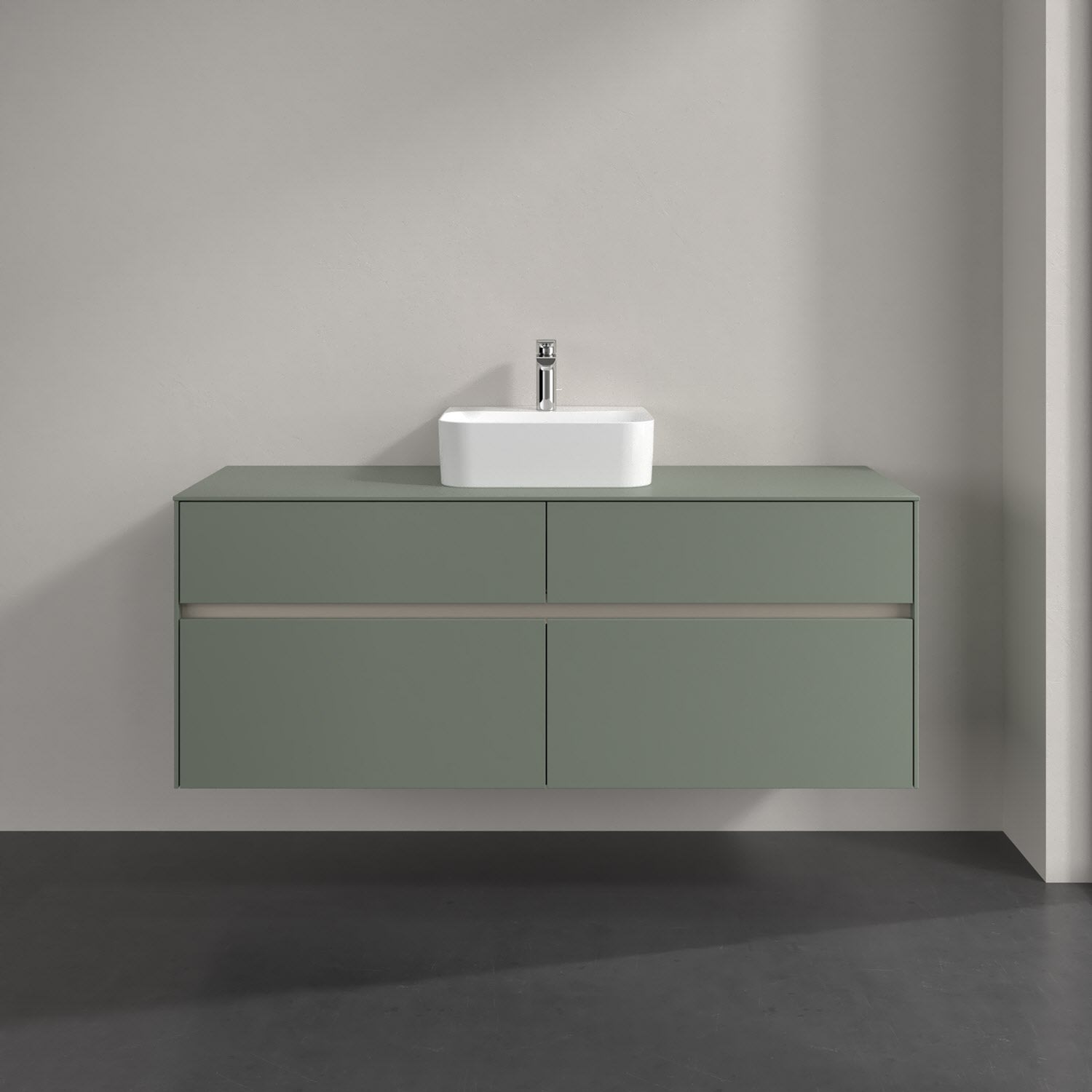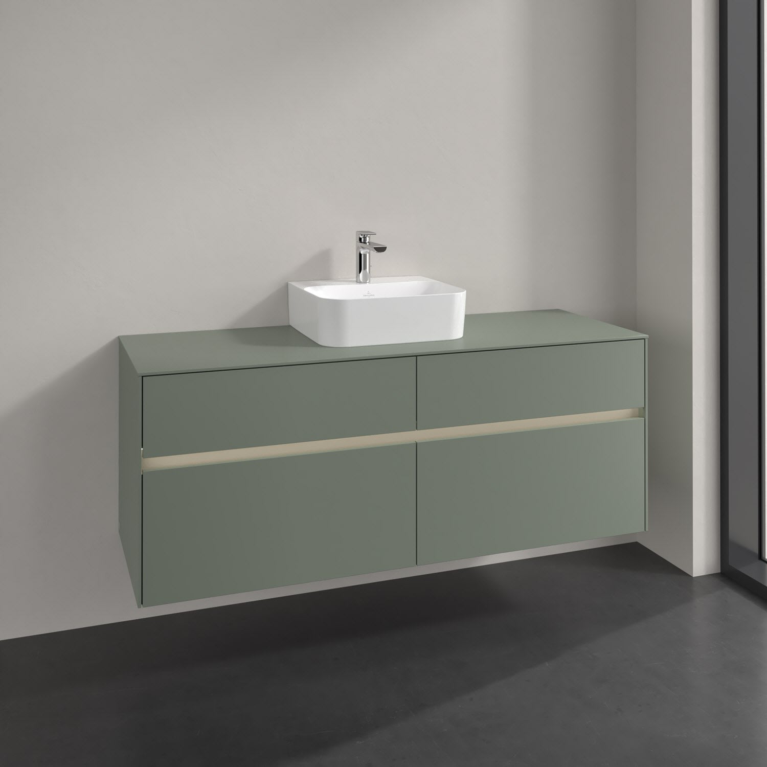Stauraumwunder im zeitgemäßen Design: Der Villeroy & Boch Waschbeckenunterschrank aus der Collaro Kollektion eignet sich besonders für Familienbäder und bietet genau den Platz, der dort benötigt wird. Eine integrierte Griffleiste sorgt für eine schlichte, moderne Front. Steuern lässt sich das Licht über einen Touch-Sensor seitlich am Unterschrank. Im Inneren bietet das Möbelstück mit vier Auszügen erstaunlich viel Komfort – ermöglicht durch großzügiges Platzangebot und den integrierten Antirutschboden. Variabel setzbare Glasabtrennungen und mitgelieferte Accessory Boxen sorgen für den nötigen Überblick. Dank SoftClosing und Selbsteinzug lassen sich die Auszüge nach der Nutzung lautlos schließen. Die Front ist mit einer hochwertigen Lackierung versehen, deren Anti-Fingerprint-Oberfläche unschönen Fingerabdrücken vorbeugt.