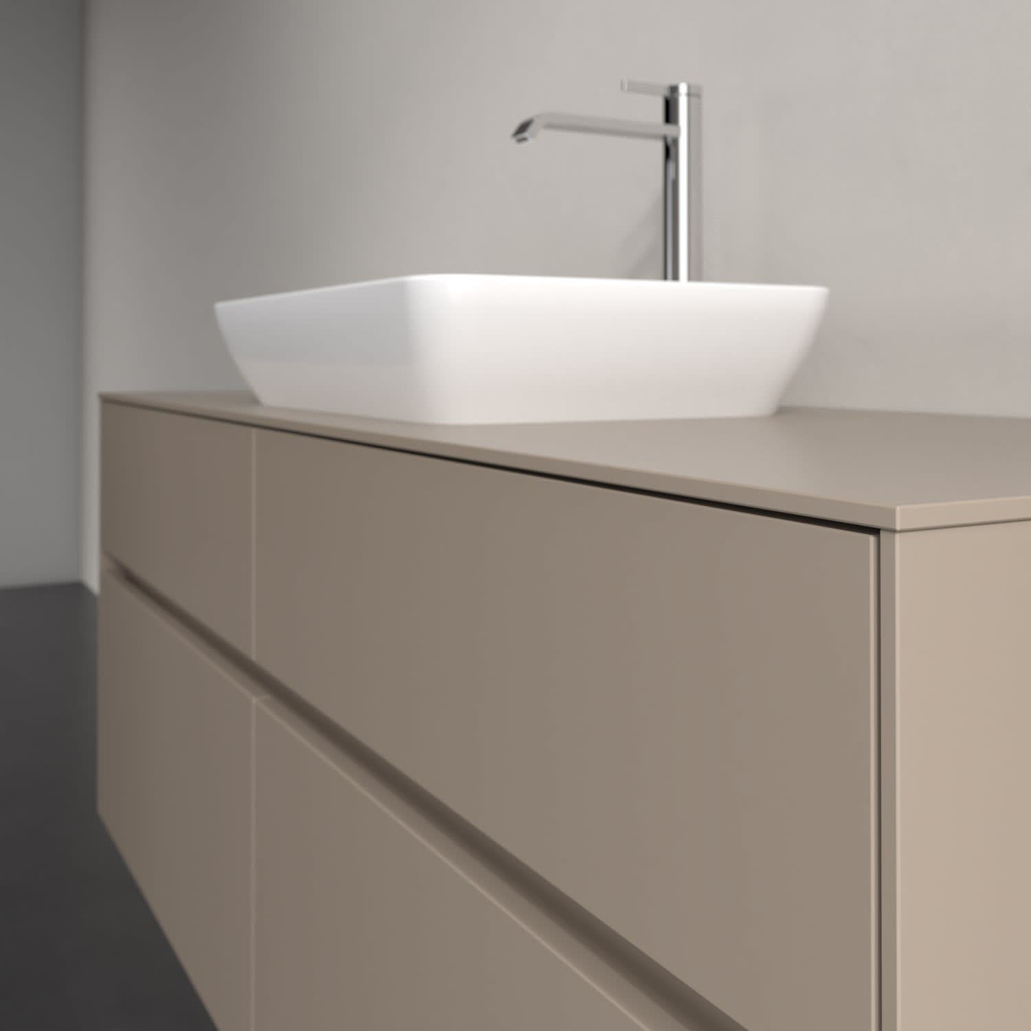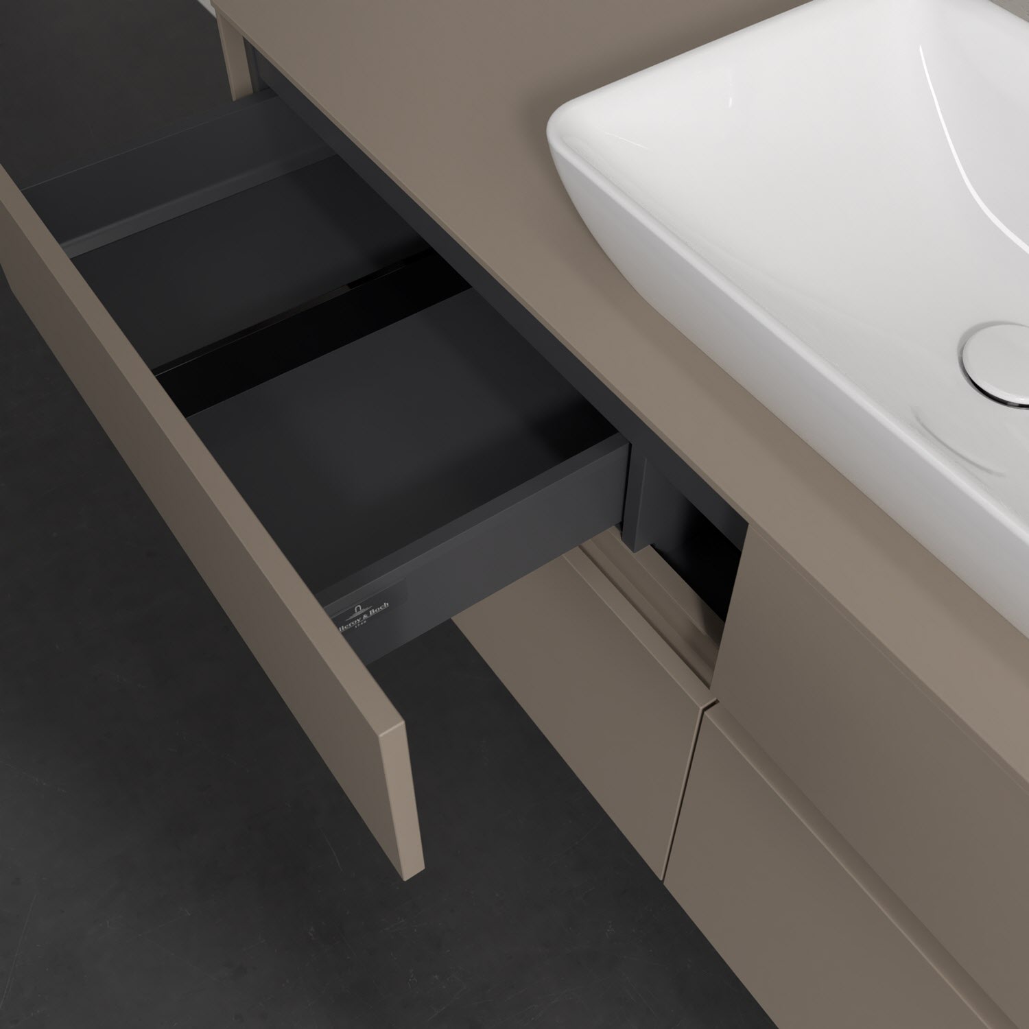 Stauraumwunder im zeitgemäßen Design: Der Villeroy & Boch Waschbeckenunterschrank aus der Collaro Kollektion eignet sich besonders für Familienbäder und bietet genau den Platz, der dort benötigt wird. Stimmungsvolles Highlight der schlichten, modernen Front ist die integrierte Griffmulde mit stufenlos einstellbarer LED-Beleuchtung. Im Inneren bietet das Möbelstück mit vier Auszügen erstaunlich viel Komfort – ermöglicht durch großzügiges Platzangebot und den integrierten Antirutschboden. Variabel setzbare Glasabtrennungen und mitgelieferte Accessory Boxen sorgen für den nötigen Überblick. Dank SoftClosing und Selbsteinzug lassen sich die Auszüge nach der Nutzung lautlos schließen. Die Front ist mit einer hochwertigen Lackierung versehen, deren Anti-Fingerprint-Oberfläche unschönen Fingerabdrücken vorbeugt.
