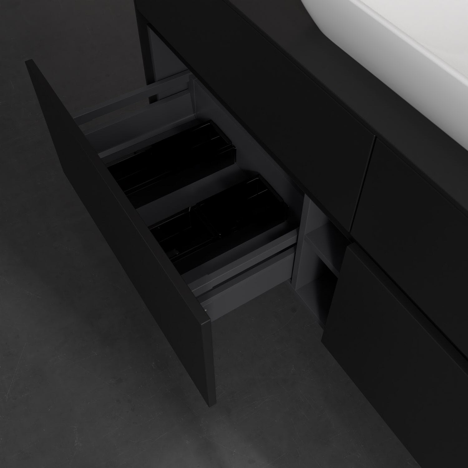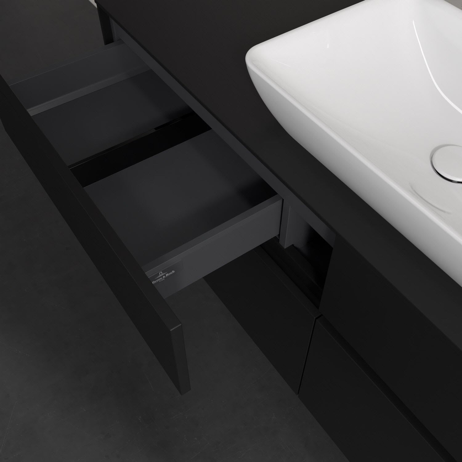 Stauraumwunder im zeitgemäßen Design: Der Villeroy & Boch Waschbeckenunterschrank aus der Collaro Kollektion eignet sich besonders für Familienbäder und bietet genau den Platz, der dort benötigt wird. Stimmungsvolles Highlight der schlichten, modernen Front ist die integrierte Griffmulde mit stufenlos einstellbarer LED-Beleuchtung. Im Inneren bietet das Möbelstück mit vier Auszügen erstaunlich viel Komfort – ermöglicht durch großzügiges Platzangebot und den integrierten Antirutschboden. Variabel setzbare Glasabtrennungen und mitgelieferte Accessory Boxen sorgen für den nötigen Überblick. Dank SoftClosing und Selbsteinzug lassen sich die Auszüge nach der Nutzung lautlos schließen. Die Front ist mit einer hochwertigen Lackierung versehen, deren Anti-Fingerprint-Oberfläche unschönen Fingerabdrücken vorbeugt.