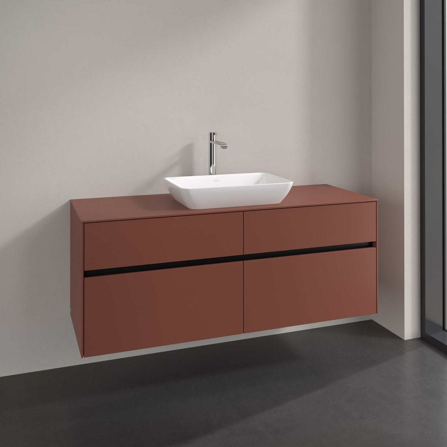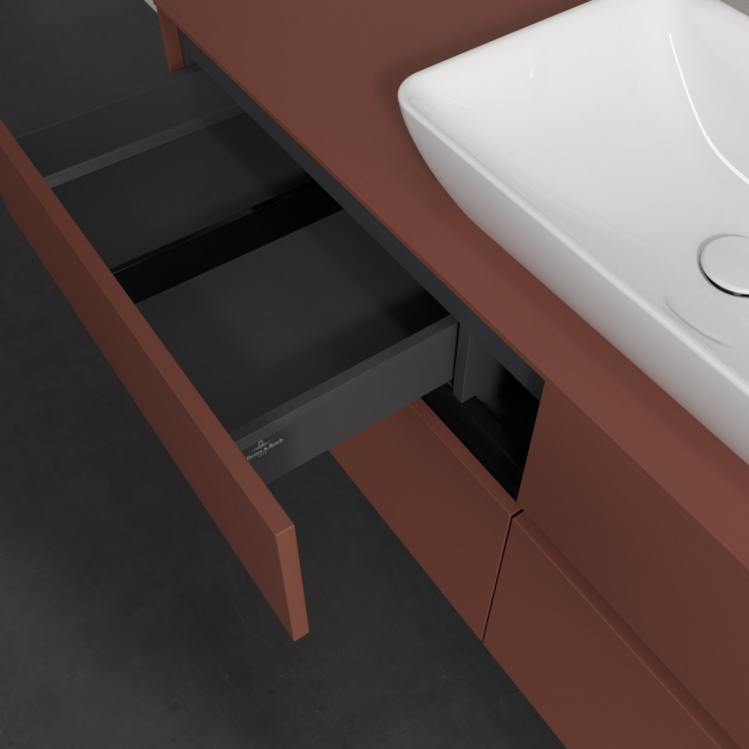 Stauraumwunder im zeitgemäßen Design: Der Villeroy & Boch Waschbeckenunterschrank aus der Collaro Kollektion eignet sich besonders für Familienbäder und bietet genau den Platz, der dort benötigt wird. Stimmungsvolles Highlight der schlichten, modernen Front ist die integrierte Griffmulde mit stufenlos einstellbarer LED-Beleuchtung. Im Inneren bietet das Möbelstück mit vier Auszügen erstaunlich viel Komfort – ermöglicht durch großzügiges Platzangebot und den integrierten Antirutschboden. Variabel setzbare Glasabtrennungen und mitgelieferte Accessory Boxen sorgen für den nötigen Überblick. Dank SoftClosing und Selbsteinzug lassen sich die Auszüge nach der Nutzung lautlos schließen. Die Front ist mit einer hochwertigen Lackierung versehen, deren Anti-Fingerprint-Oberfläche unschönen Fingerabdrücken vorbeugt.