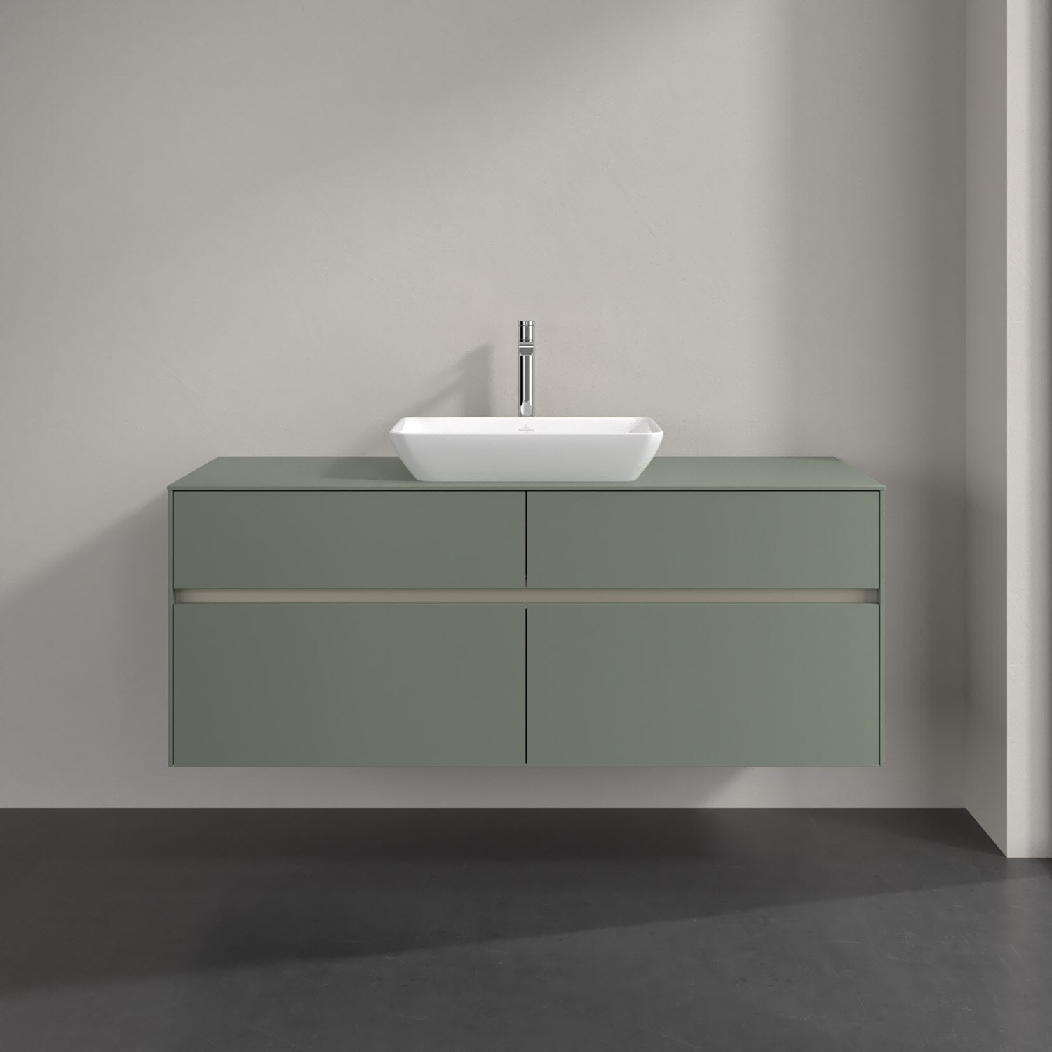 Stauraumwunder im zeitgemäßen Design: Der Villeroy & Boch Waschbeckenunterschrank aus der Collaro Kollektion eignet sich besonders für Familienbäder und bietet genau den Platz, der dort benötigt wird. Eine integrierte Griffleiste sorgt für eine schlichte, moderne Front. Steuern lässt sich das Licht über einen Touch-Sensor seitlich am Unterschrank. Im Inneren bietet das Möbelstück mit vier Auszügen erstaunlich viel Komfort – ermöglicht durch großzügiges Platzangebot und den integrierten Antirutschboden. Variabel setzbare Glasabtrennungen und mitgelieferte Accessory Boxen sorgen für den nötigen Überblick. Dank SoftClosing und Selbsteinzug lassen sich die Auszüge nach der Nutzung lautlos schließen. Die Front ist mit einer hochwertigen Lackierung versehen, deren Anti-Fingerprint-Oberfläche unschönen Fingerabdrücken vorbeugt.