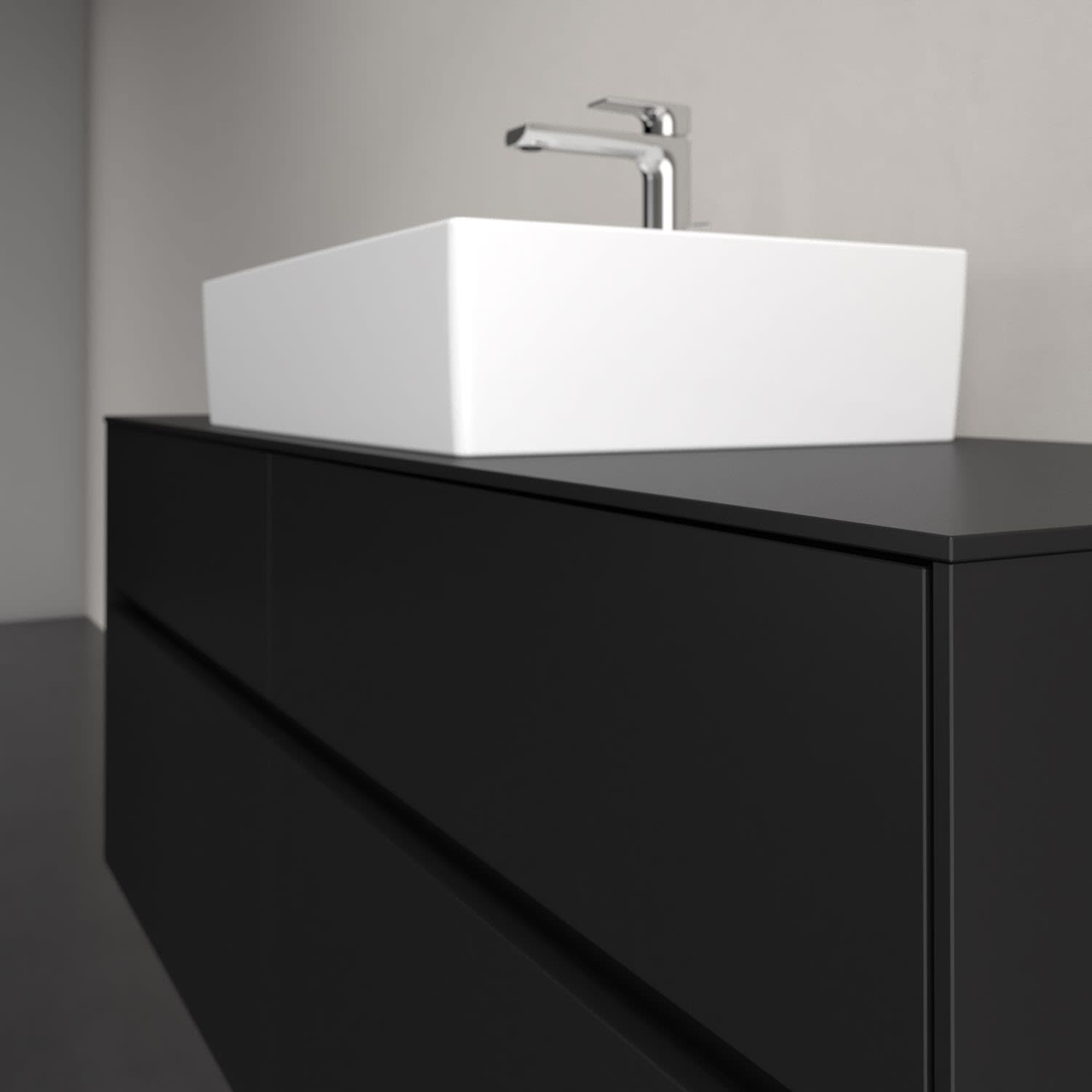 Stauraumwunder im zeitgemäßen Design: Der Villeroy & Boch Waschbeckenunterschrank aus der Collaro Kollektion eignet sich besonders für Familienbäder und bietet genau den Platz, der dort benötigt wird. Stimmungsvolles Highlight der schlichten, modernen Front ist die integrierte Griffmulde mit stufenlos einstellbarer LED-Beleuchtung. Im Inneren bietet das Möbelstück mit vier Auszügen erstaunlich viel Komfort – ermöglicht durch großzügiges Platzangebot und den integrierten Antirutschboden. Variabel setzbare Glasabtrennungen und mitgelieferte Accessory Boxen sorgen für den nötigen Überblick. Dank SoftClosing und Selbsteinzug lassen sich die Auszüge nach der Nutzung lautlos schließen. Die Front ist mit einer hochwertigen Lackierung versehen, deren Anti-Fingerprint-Oberfläche unschönen Fingerabdrücken vorbeugt.