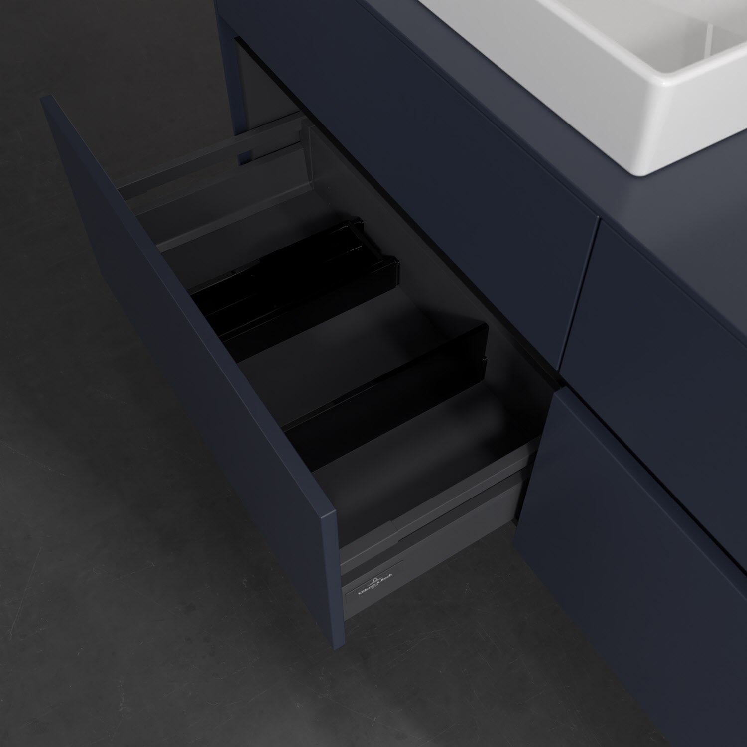 - kein Umfallen oder Verrutschen von Pflegeprodukten in den Schubladen dank rutschhemmendem Boden