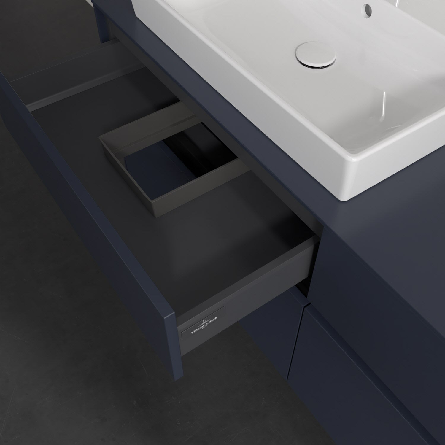 Stauraumwunder im zeitgemäßen Design: Der Villeroy & Boch Waschbeckenunterschrank aus der Collaro Kollektion eignet sich besonders für Familienbäder und bietet genau den Platz, der dort benötigt wird. Stimmungsvolles Highlight der schlichten, modernen Front ist die integrierte Griffmulde mit stufenlos einstellbarer LED-Beleuchtung. Im Inneren bietet das Möbelstück mit vier Auszügen erstaunlich viel Komfort – ermöglicht durch großzügiges Platzangebot und den integrierten Antirutschboden. Variabel setzbare Glasabtrennungen und mitgelieferte Accessory Boxen sorgen für den nötigen Überblick. Dank SoftClosing und Selbsteinzug lassen sich die Auszüge nach der Nutzung lautlos schließen. Die Front ist mit einer hochwertigen Lackierung versehen, deren Anti-Fingerprint-Oberfläche unschönen Fingerabdrücken vorbeugt.