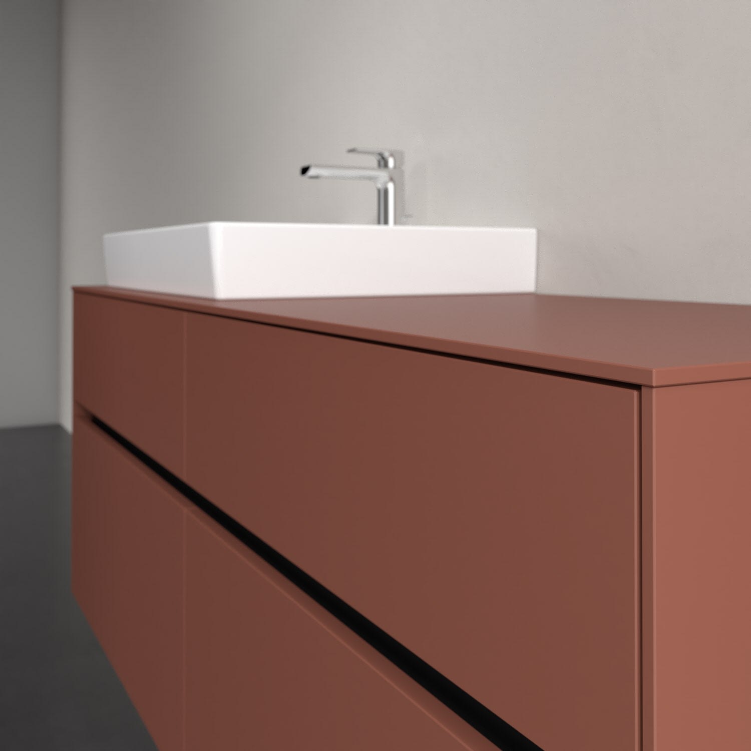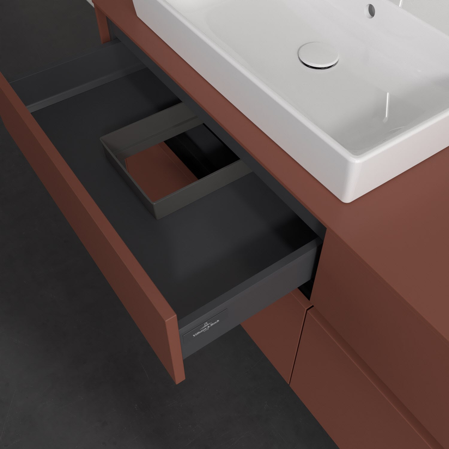 Stauraumwunder im zeitgemäßen Design: Der Villeroy & Boch Waschbeckenunterschrank aus der Collaro Kollektion eignet sich besonders für Familienbäder und bietet genau den Platz, der dort benötigt wird. Stimmungsvolles Highlight der schlichten, modernen Front ist die integrierte Griffmulde mit stufenlos einstellbarer LED-Beleuchtung. Im Inneren bietet das Möbelstück mit vier Auszügen erstaunlich viel Komfort – ermöglicht durch großzügiges Platzangebot und den integrierten Antirutschboden. Variabel setzbare Glasabtrennungen und mitgelieferte Accessory Boxen sorgen für den nötigen Überblick. Dank SoftClosing und Selbsteinzug lassen sich die Auszüge nach der Nutzung lautlos schließen. Die Front ist mit einer hochwertigen Lackierung versehen, deren Anti-Fingerprint-Oberfläche unschönen Fingerabdrücken vorbeugt.