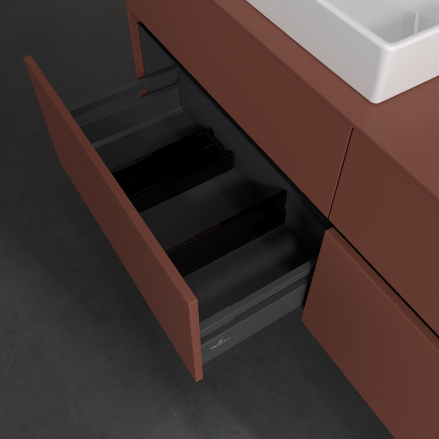 - kein Umfallen oder Verrutschen von Pflegeprodukten in den Schubladen dank rutschhemmendem Boden