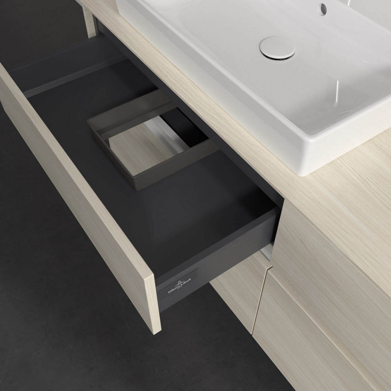 - kein Umfallen oder Verrutschen von Pflegeprodukten in den Schubladen dank rutschhemmendem Boden