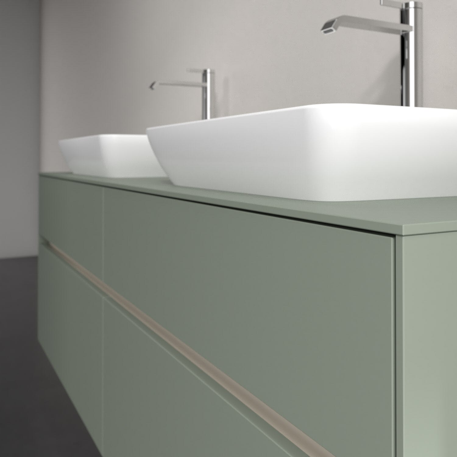 Stauraumwunder im zeitgemäßen Design: Der Villeroy & Boch Waschbeckenunterschrank aus der Collaro Kollektion eignet sich besonders für Familienbäder und bietet genau den Platz, der dort benötigt wird. Stimmungsvolles Highlight der schlichten, modernen Front ist die integrierte Griffmulde mit stufenlos einstellbarer LED-Beleuchtung. Im Inneren bietet das Möbelstück mit vier Auszügen erstaunlich viel Komfort – ermöglicht durch großzügiges Platzangebot und den integrierten Antirutschboden. Variabel setzbare Glasabtrennungen und mitgelieferte Accessory Boxen sorgen für den nötigen Überblick. Dank SoftClosing und Selbsteinzug lassen sich die Auszüge nach der Nutzung lautlos schließen. Die Front ist mit einer hochwertigen Lackierung versehen, deren Anti-Fingerprint-Oberfläche unschönen Fingerabdrücken vorbeugt.