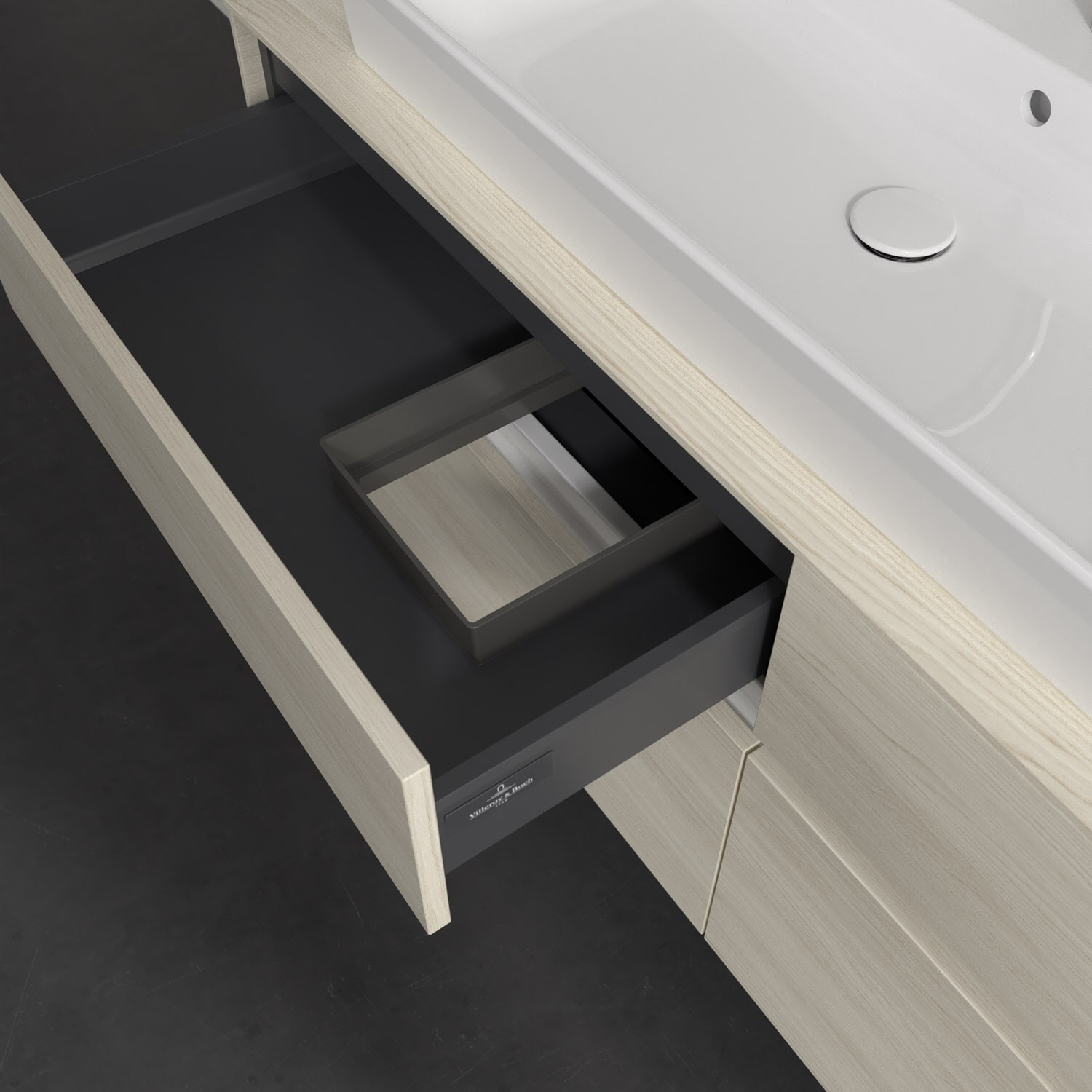 - kein Umfallen oder Verrutschen von Pflegeprodukten in den Schubladen dank rutschhemmendem Boden