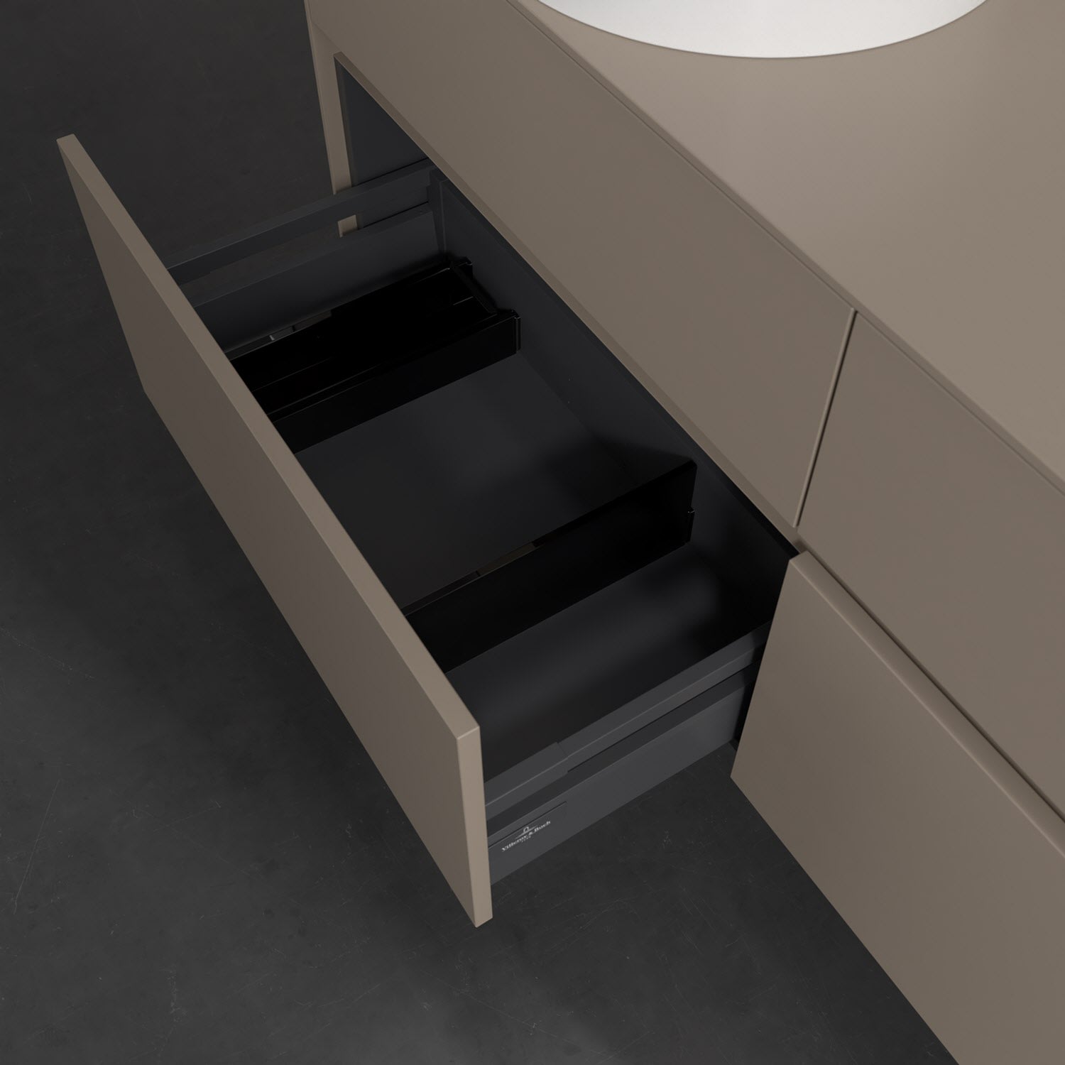 Stauraumwunder im zeitgemäßen Design: Der Villeroy & Boch Waschbeckenunterschrank aus der Collaro Kollektion eignet sich besonders für Familienbäder und bietet genau den Platz, der dort benötigt wird. Eine integrierte Griffleiste sorgt für eine schlichte, moderne Front. Im Inneren bietet das Möbelstück mit vier Auszügen erstaunlich viel Komfort – ermöglicht durch großzügiges Platzangebot und den integrierten Antirutschboden. Variabel setzbare Glasabtrennungen und mitgelieferte Accessory Boxen sorgen für den nötigen Überblick. Dank SoftClosing und Selbsteinzug lassen sich die Auszüge nach der Nutzung lautlos schließen. Die Front ist mit einer hochwertigen Lackierung versehen, deren Anti-Fingerprint-Oberfläche unschönen Fingerabdrücken vorbeugt.