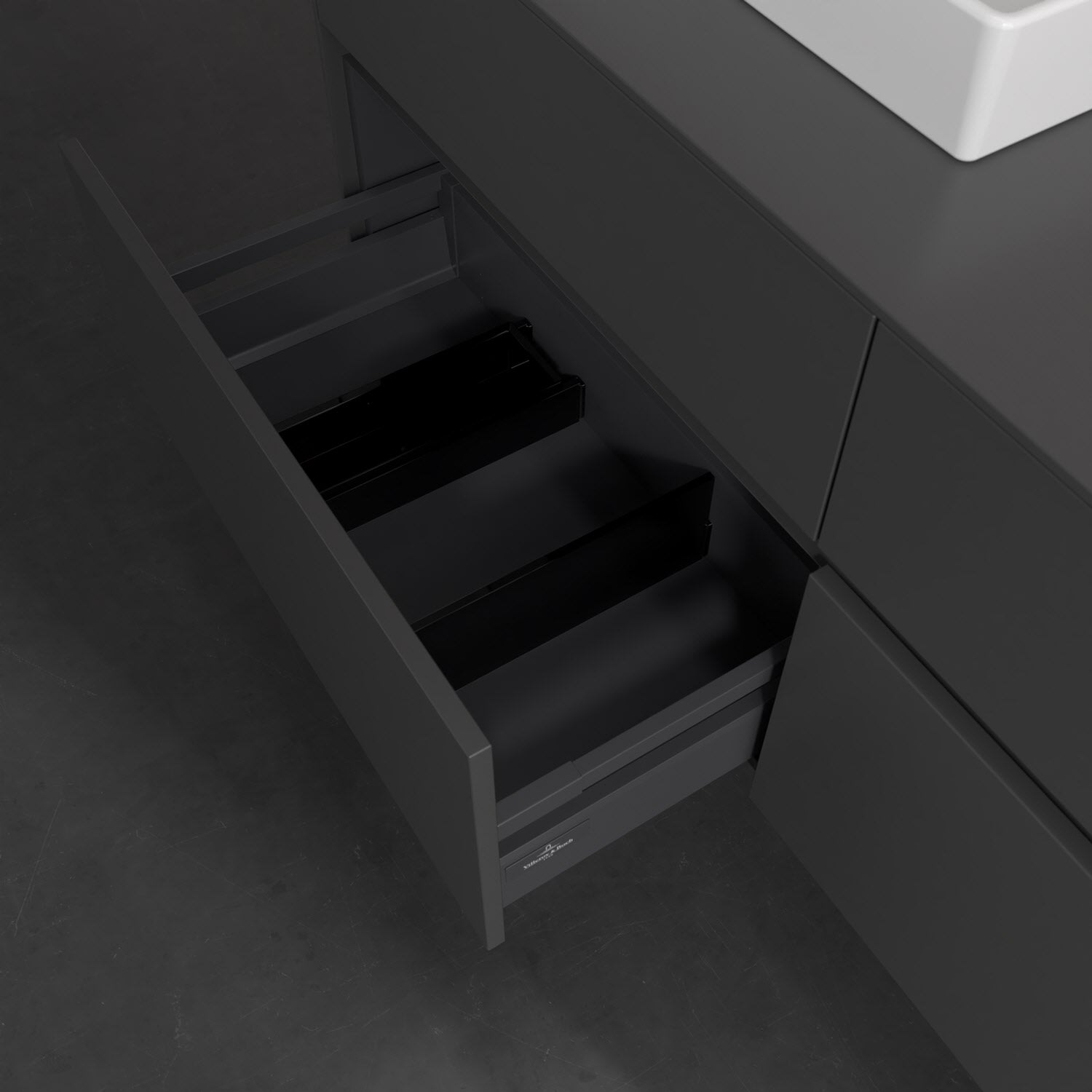 - kein Umfallen oder Verrutschen von Pflegeprodukten in den Schubladen dank rutschhemmendem Boden