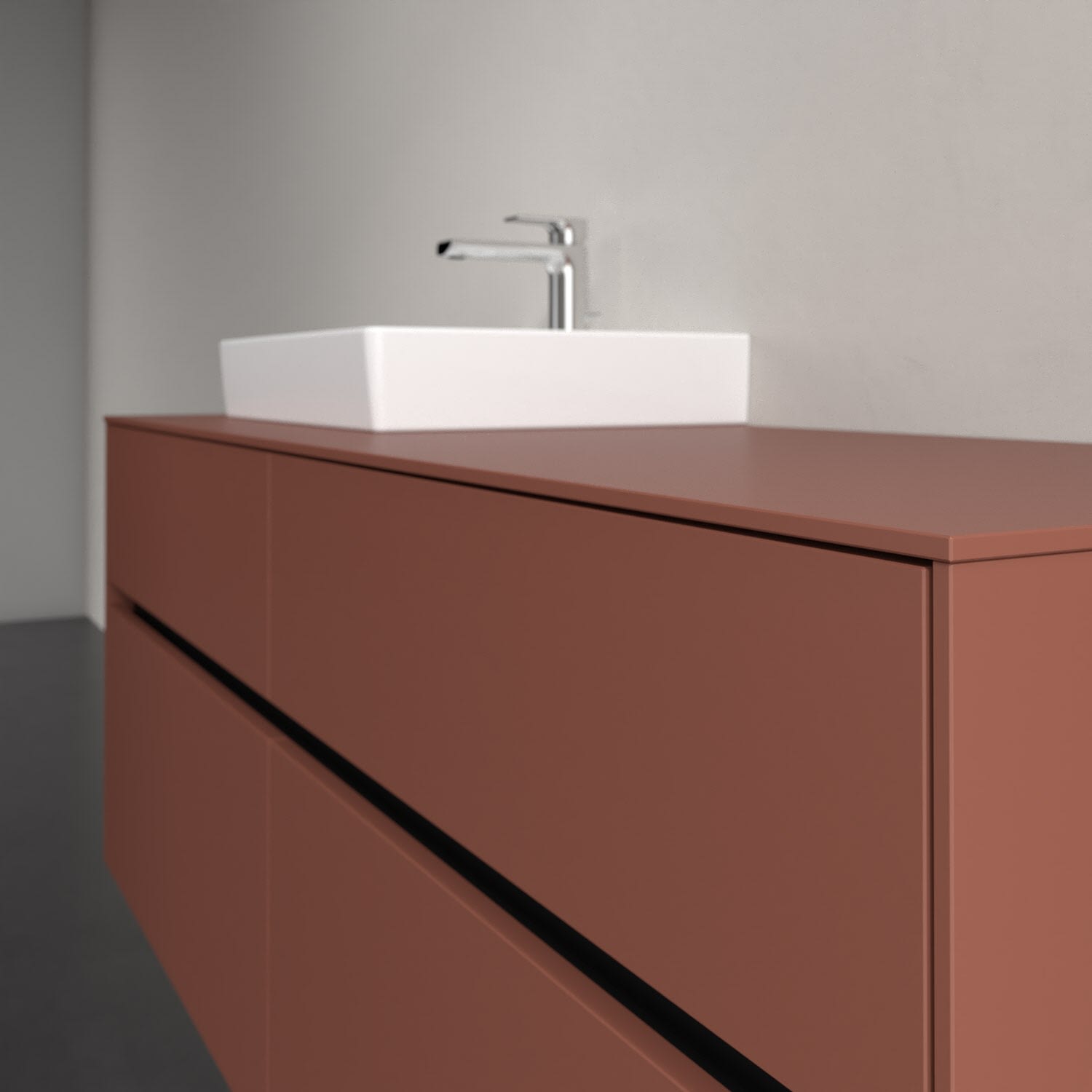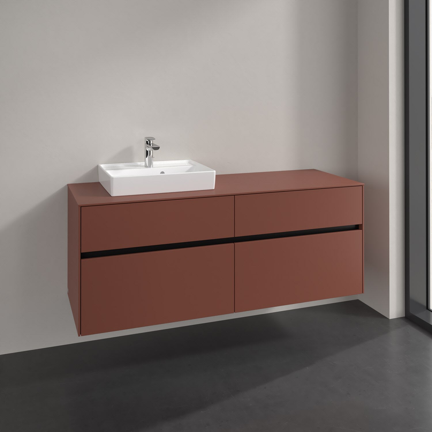 Stauraumwunder im zeitgemäßen Design: Der Villeroy & Boch Waschbeckenunterschrank aus der Collaro Kollektion eignet sich besonders für Familienbäder und bietet genau den Platz, der dort benötigt wird. Stimmungsvolles Highlight der schlichten, modernen Front ist die integrierte Griffmulde mit stufenlos einstellbarer LED-Beleuchtung. Im Inneren bietet das Möbelstück mit vier Auszügen erstaunlich viel Komfort – ermöglicht durch großzügiges Platzangebot und den integrierten Antirutschboden. Variabel setzbare Glasabtrennungen und mitgelieferte Accessory Boxen sorgen für den nötigen Überblick. Dank SoftClosing und Selbsteinzug lassen sich die Auszüge nach der Nutzung lautlos schließen. Die Front ist mit einer hochwertigen Lackierung versehen, deren Anti-Fingerprint-Oberfläche unschönen Fingerabdrücken vorbeugt.