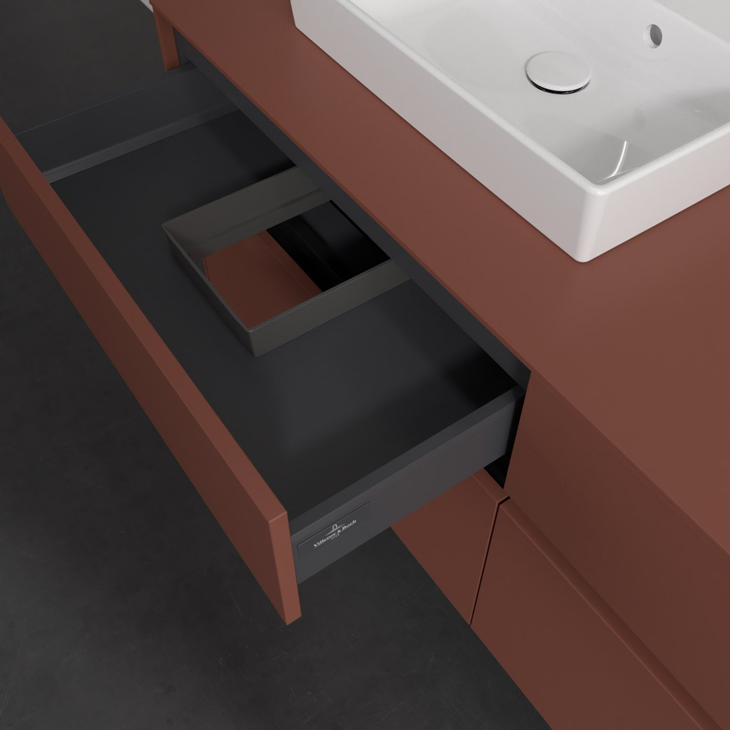 - kein Umfallen oder Verrutschen von Pflegeprodukten in den Schubladen dank rutschhemmendem Boden