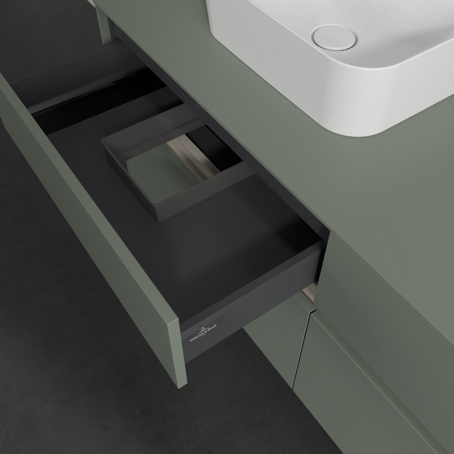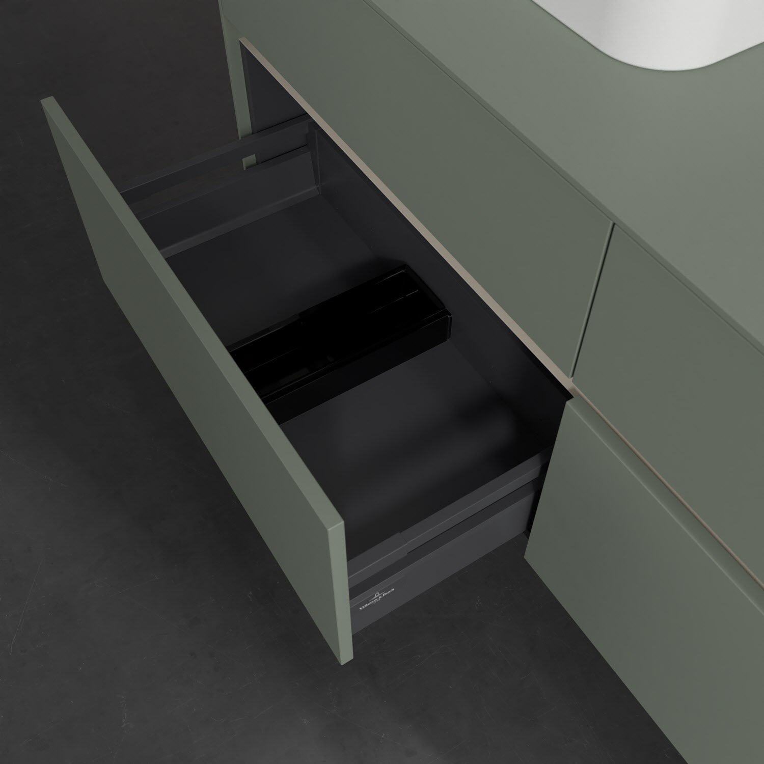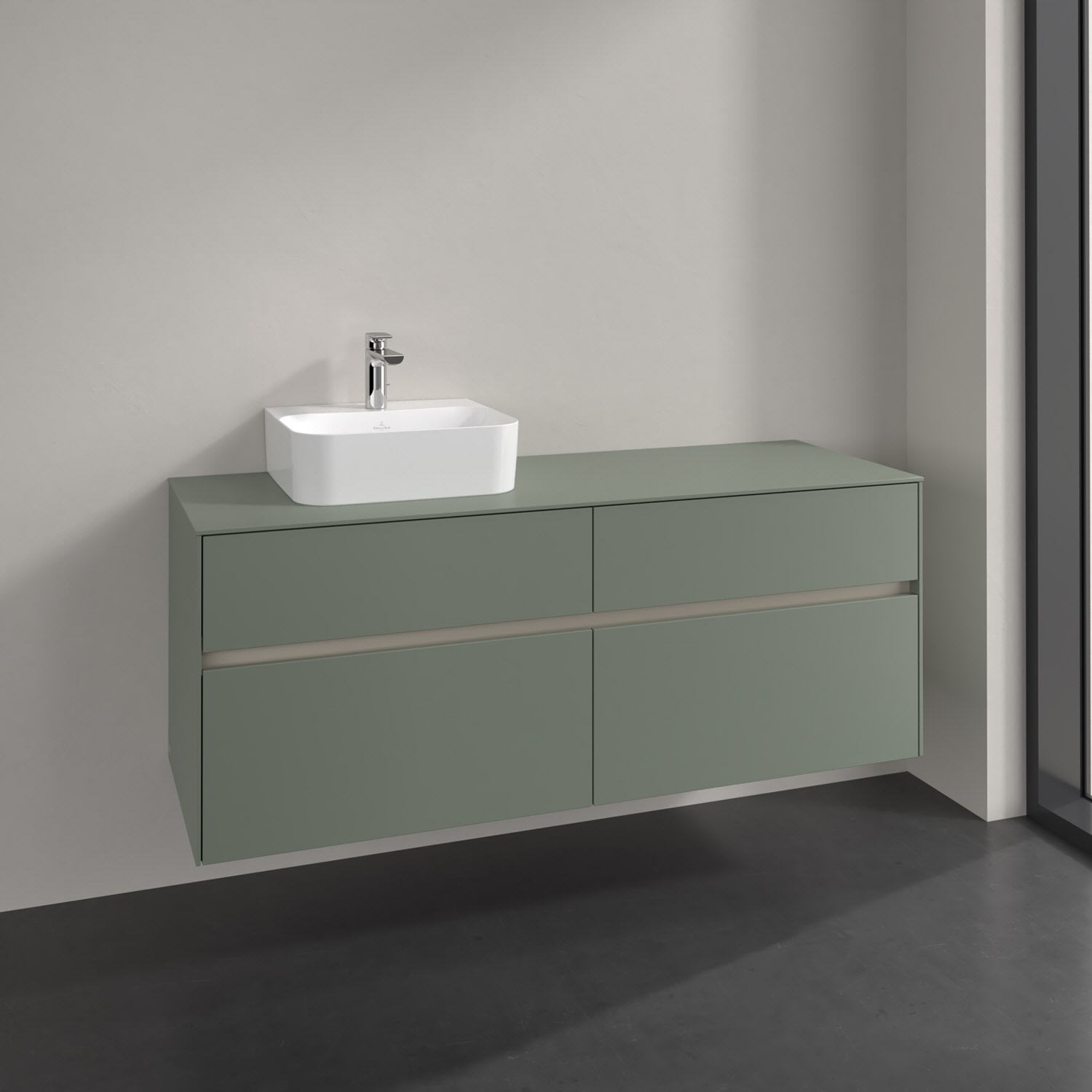 Stauraumwunder im zeitgemäßen Design: Der Villeroy & Boch Waschbeckenunterschrank aus der Collaro Kollektion eignet sich besonders für Familienbäder und bietet genau den Platz, der dort benötigt wird. Stimmungsvolles Highlight der schlichten, modernen Front ist die integrierte Griffmulde mit stufenlos einstellbarer LED-Beleuchtung. Im Inneren bietet das Möbelstück mit vier Auszügen erstaunlich viel Komfort – ermöglicht durch großzügiges Platzangebot und den integrierten Antirutschboden. Variabel setzbare Glasabtrennungen und mitgelieferte Accessory Boxen sorgen für den nötigen Überblick. Dank SoftClosing und Selbsteinzug lassen sich die Auszüge nach der Nutzung lautlos schließen. Die Front ist mit einer hochwertigen Lackierung versehen, deren Anti-Fingerprint-Oberfläche unschönen Fingerabdrücken vorbeugt.