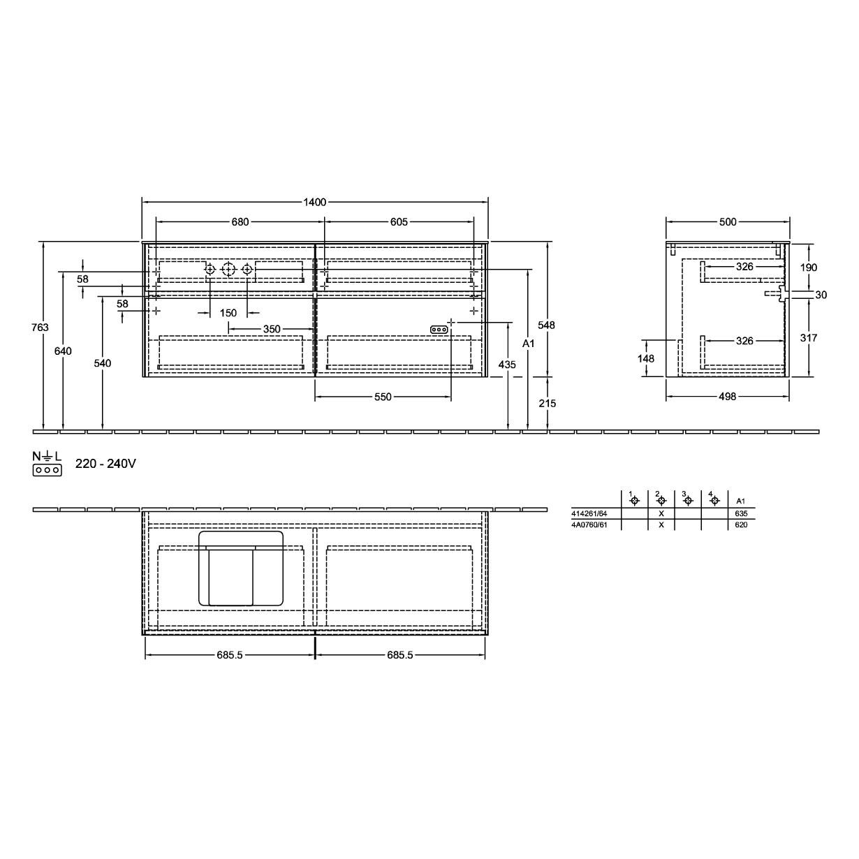 Villeroy & Boch Collaro Waschtischunterschrank 140 x 54,8 cm , mit 4 Auszügen