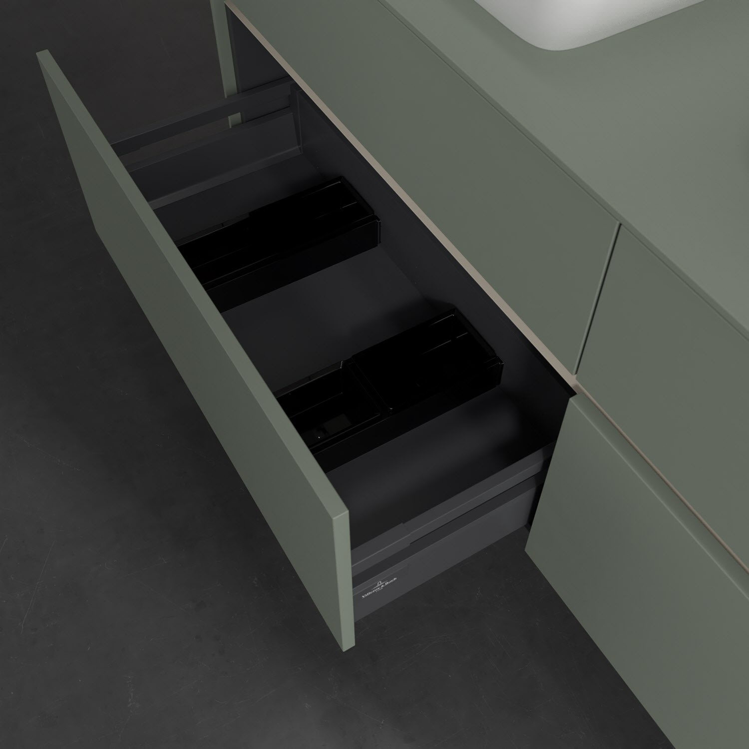Stauraumwunder im zeitgemäßen Design: Der Villeroy & Boch Waschbeckenunterschrank aus der Collaro Kollektion eignet sich besonders für Familienbäder und bietet genau den Platz, der dort benötigt wird. Eine integrierte Griffleiste sorgt für eine schlichte, moderne Front. Steuern lässt sich das Licht über einen Touch-Sensor seitlich am Unterschrank. Im Inneren bietet das Möbelstück mit vier Auszügen erstaunlich viel Komfort – ermöglicht durch großzügiges Platzangebot und den integrierten Antirutschboden. Variabel setzbare Glasabtrennungen und mitgelieferte Accessory Boxen sorgen für den nötigen Überblick. Dank SoftClosing und Selbsteinzug lassen sich die Auszüge nach der Nutzung lautlos schließen. Die Front ist mit einer hochwertigen Lackierung versehen, deren Anti-Fingerprint-Oberfläche unschönen Fingerabdrücken vorbeugt.