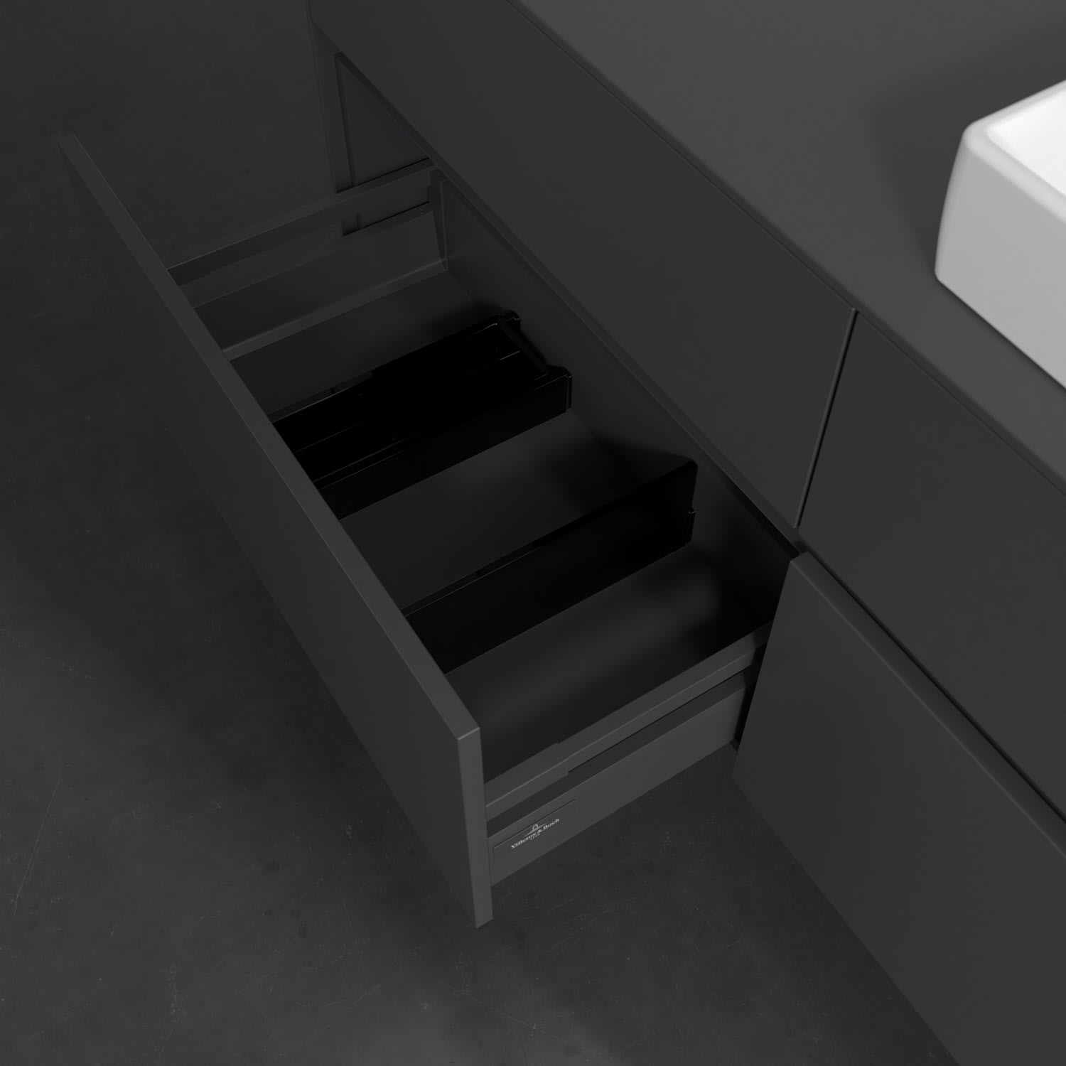 - kein Umfallen oder Verrutschen von Pflegeprodukten in den Schubladen dank rutschhemmendem Boden