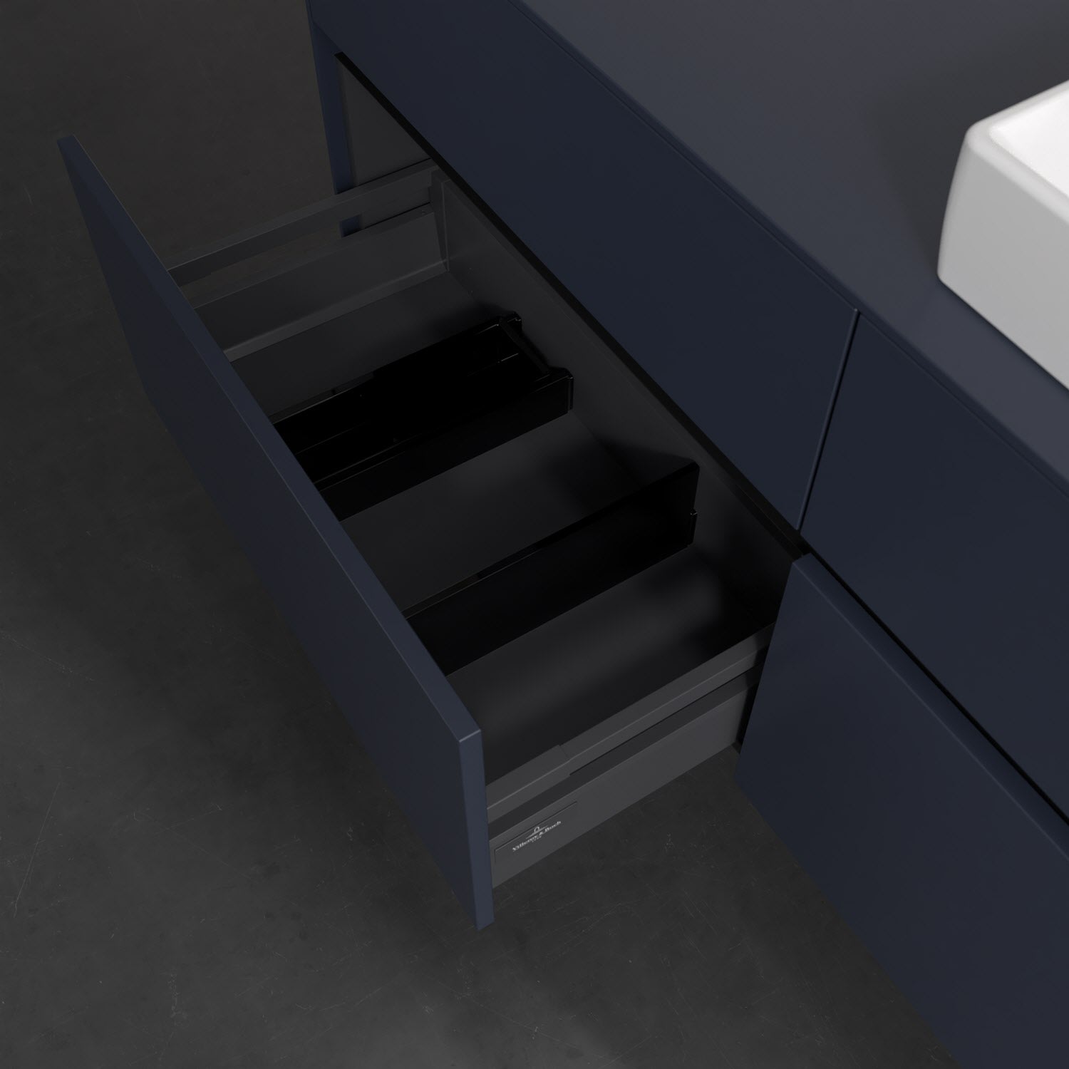 - kein Umfallen oder Verrutschen von Pflegeprodukten in den Schubladen dank rutschhemmendem Boden
