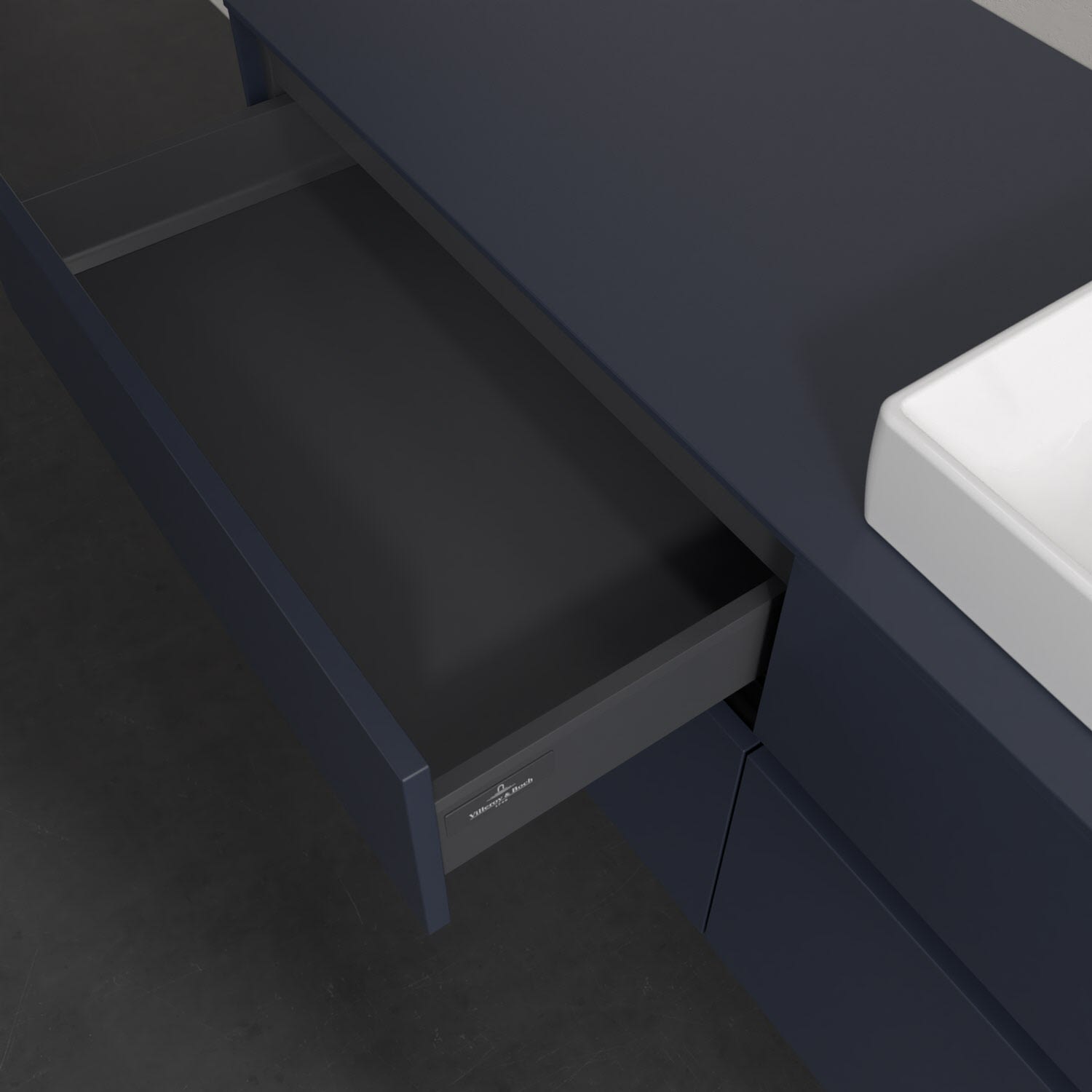 Stauraumwunder im zeitgemäßen Design: Der Villeroy & Boch Waschbeckenunterschrank aus der Collaro Kollektion eignet sich besonders für Familienbäder und bietet genau den Platz, der dort benötigt wird. Stimmungsvolles Highlight der schlichten, modernen Front ist die integrierte Griffmulde mit stufenlos einstellbarer LED-Beleuchtung. Im Inneren bietet das Möbelstück mit vier Auszügen erstaunlich viel Komfort – ermöglicht durch großzügiges Platzangebot und den integrierten Antirutschboden. Variabel setzbare Glasabtrennungen und mitgelieferte Accessory Boxen sorgen für den nötigen Überblick. Dank SoftClosing und Selbsteinzug lassen sich die Auszüge nach der Nutzung lautlos schließen. Die Front ist mit einer hochwertigen Lackierung versehen, deren Anti-Fingerprint-Oberfläche unschönen Fingerabdrücken vorbeugt.