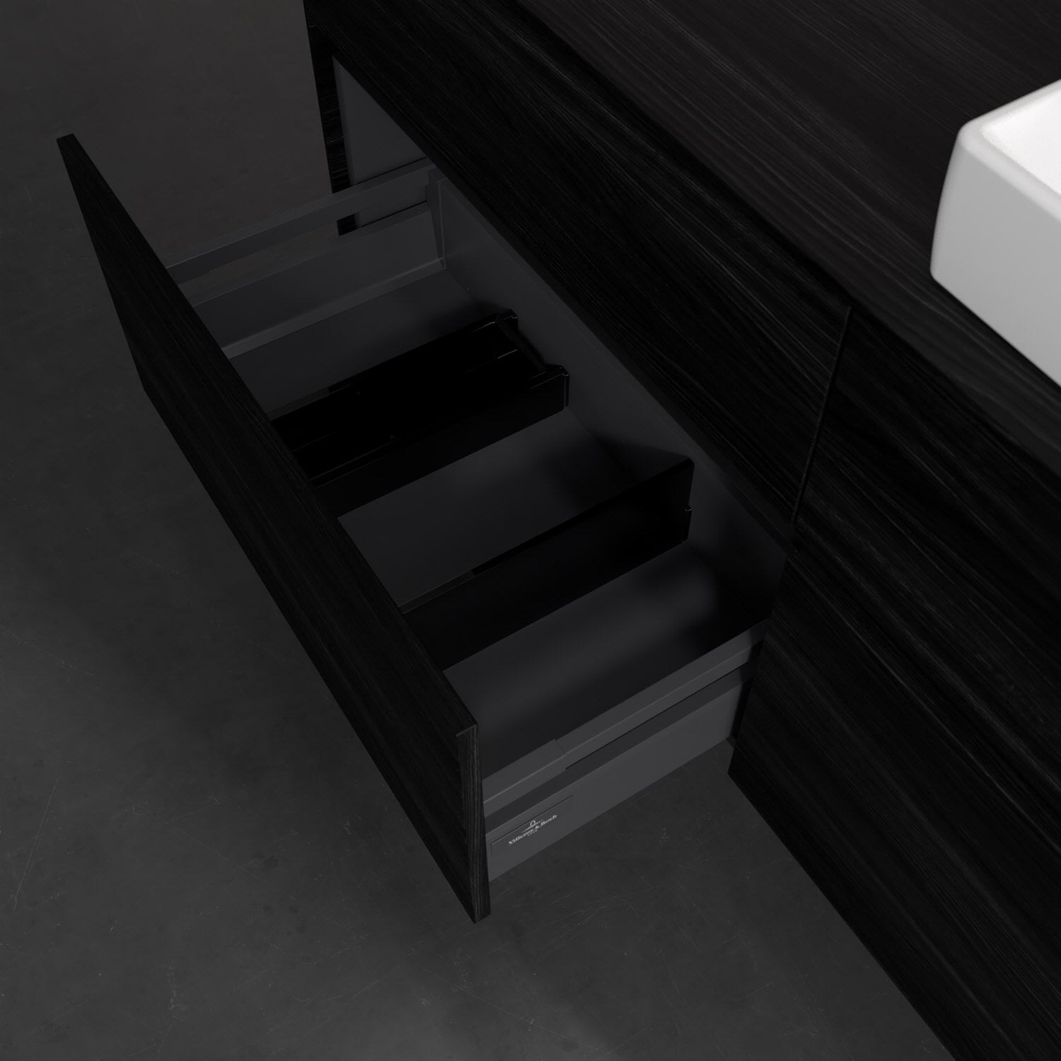 - kein Umfallen oder Verrutschen von Pflegeprodukten in den Schubladen dank rutschhemmendem Boden