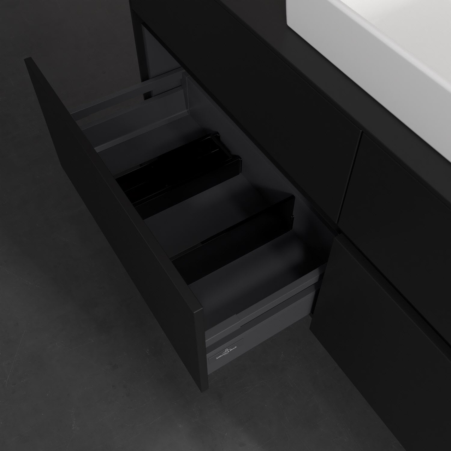 - kein Umfallen oder Verrutschen von Pflegeprodukten in den Schubladen dank rutschhemmendem Boden