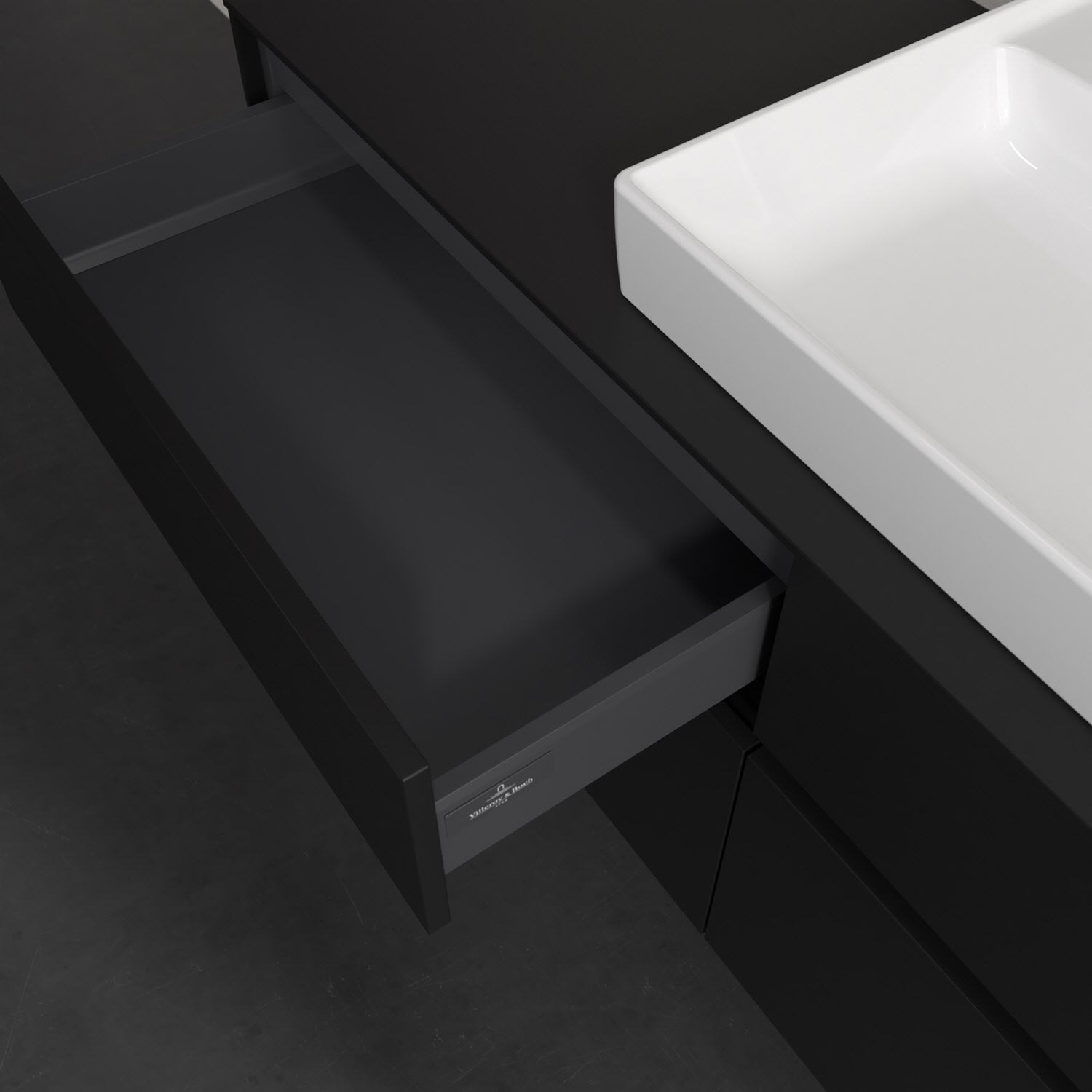 Stauraumwunder im zeitgemäßen Design: Der Villeroy & Boch Waschbeckenunterschrank aus der Collaro Kollektion eignet sich besonders für Familienbäder und bietet genau den Platz, der dort benötigt wird. Stimmungsvolles Highlight der schlichten, modernen Front ist die integrierte Griffmulde mit stufenlos einstellbarer LED-Beleuchtung. Im Inneren bietet das Möbelstück mit vier Auszügen erstaunlich viel Komfort – ermöglicht durch großzügiges Platzangebot und den integrierten Antirutschboden. Variabel setzbare Glasabtrennungen und mitgelieferte Accessory Boxen sorgen für den nötigen Überblick. Dank SoftClosing und Selbsteinzug lassen sich die Auszüge nach der Nutzung lautlos schließen. Die Front ist mit einer hochwertigen Lackierung versehen, deren Anti-Fingerprint-Oberfläche unschönen Fingerabdrücken vorbeugt.