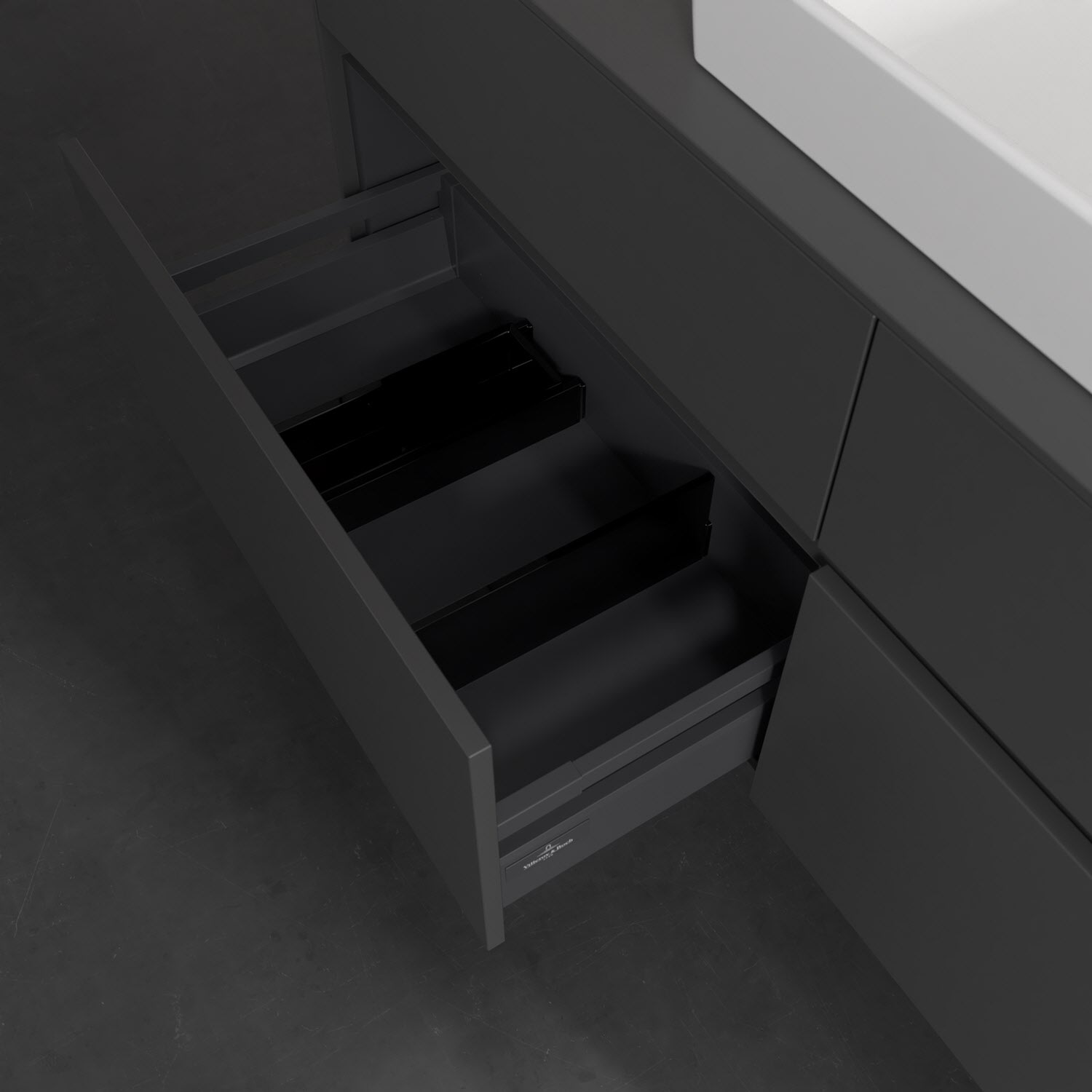 - kein Umfallen oder Verrutschen von Pflegeprodukten in den Schubladen dank rutschhemmendem Boden